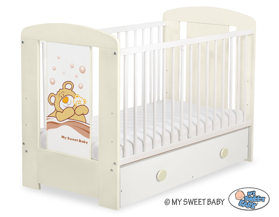 Baby cot bed 120x60cm Tedy Bear Barnaba with drawer MAXI Wooden baby cot 120x60cm with drawer MAXI