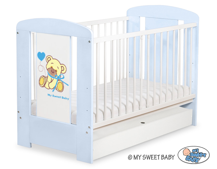 Baby cot bed 120x60cm Tedy Bear with bow blue with drawer STANDARD