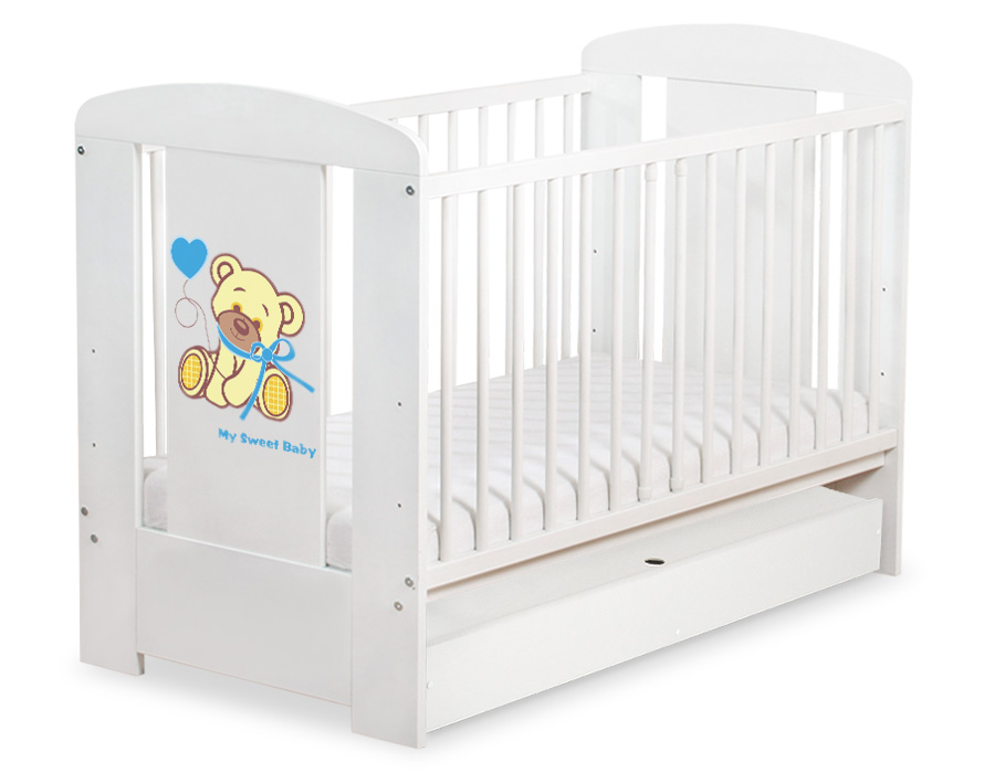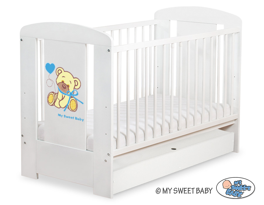 - front and back are made of melamine faced chipboard. On the front of cot the graphic that fits to the bedding Teddy Bear with bow.