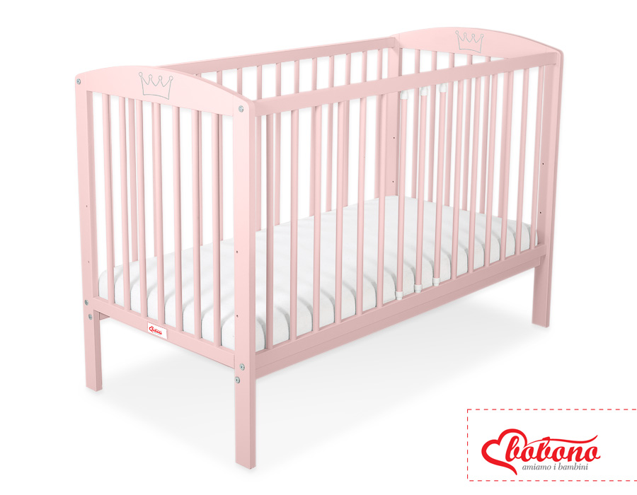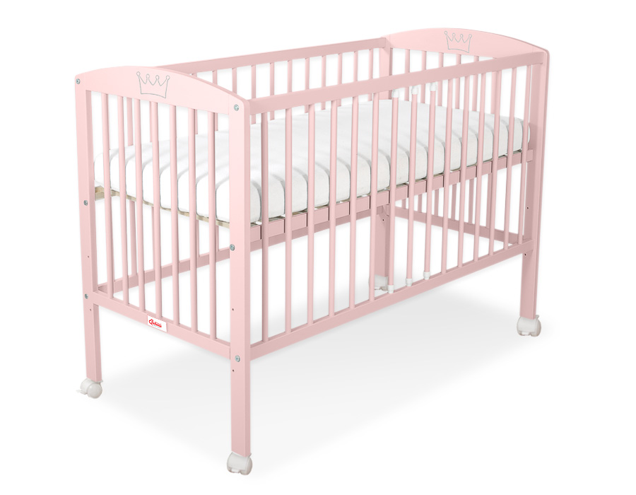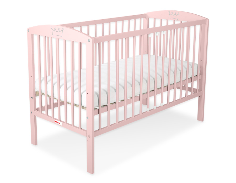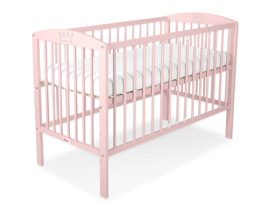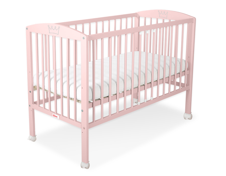Baby cot bed 120x60cm with crown no. 5006-01- powder pink The most beautiful wooden baby cot. Removable rungs, three levels of height of mattress frame.
