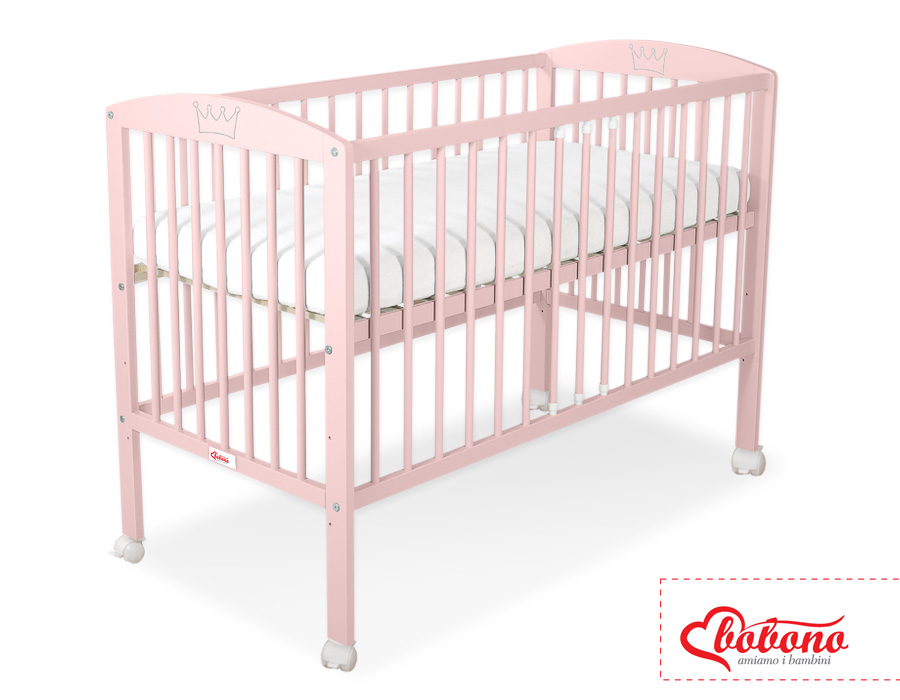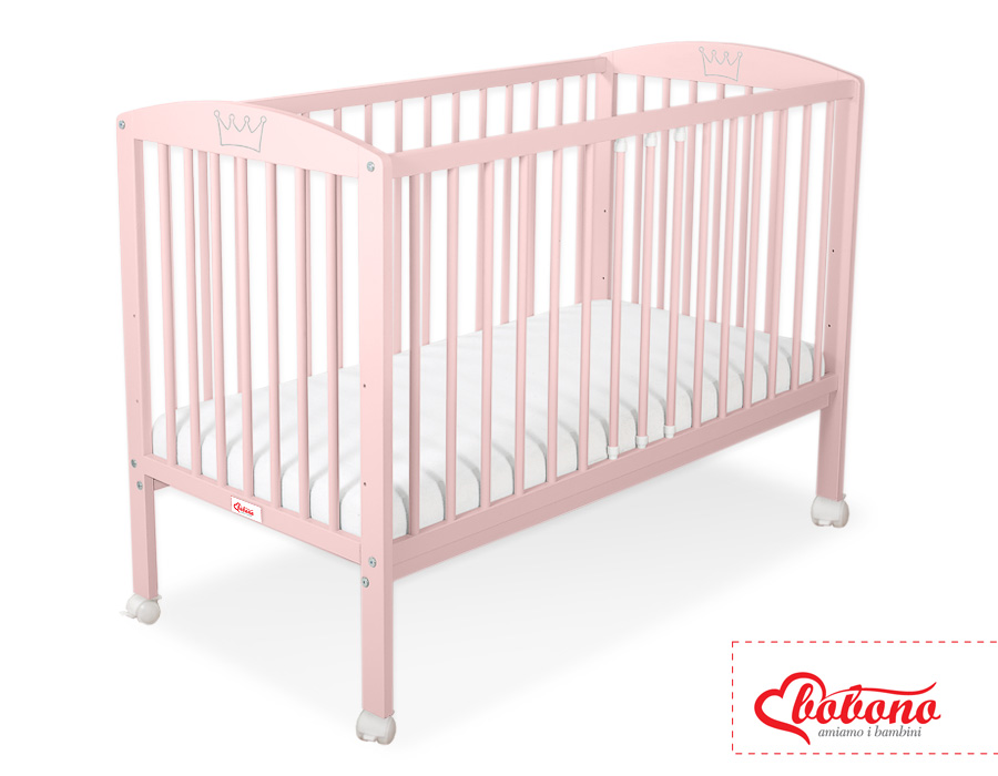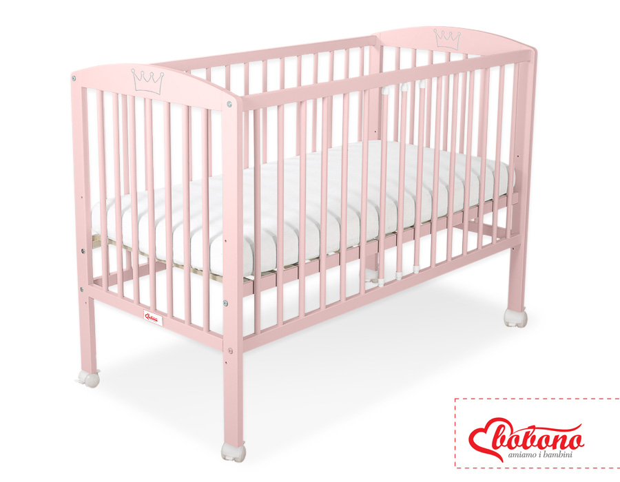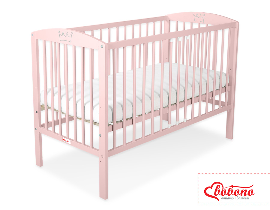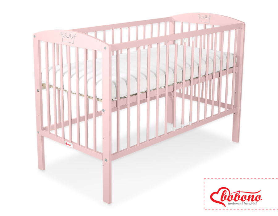 Baby cot bed 120x60cm with crown no. 5006-01- powder pink The most beautiful wooden baby cot. Removable rungs, three levels of height of mattress frame.