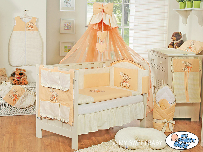 Baby Shop » Bedding sets for cots and beds » Collection TEDDY BEAR WITH BOW » Mosquito-net » Baby Cot Bed Mosquito-net made of tulle- Bear with bow peach
