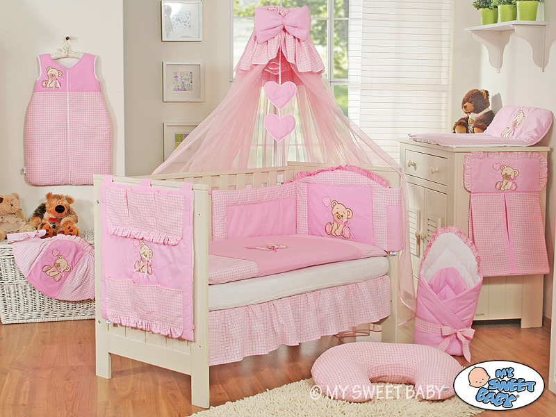 Baby Cot Bed Mosquito-net made of tulle- Bear with bow pinkBaby Cot Bed Mosquito-net made of tulle- Bear with bow pink