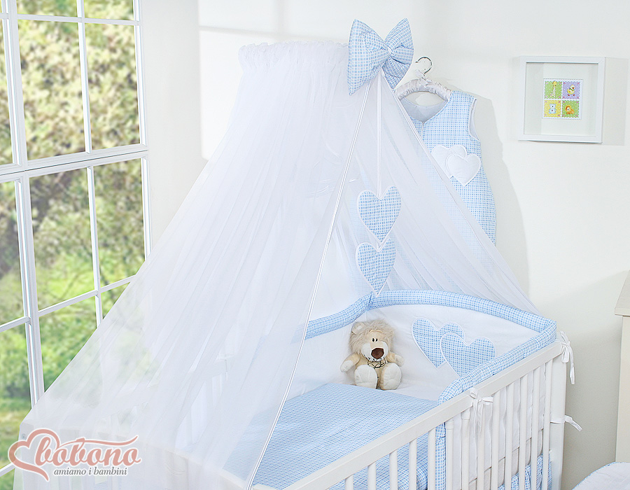 Baby Cot Bed Mosquito-net made of tulle- Hanging Hearts blue checkeredBaby Cot Bed Mosquito-net made of tulle- Hanging Hearts blue checkeredBaby Cot Bed Mosquito-net made of tulle- Hanging Hearts blue checkered