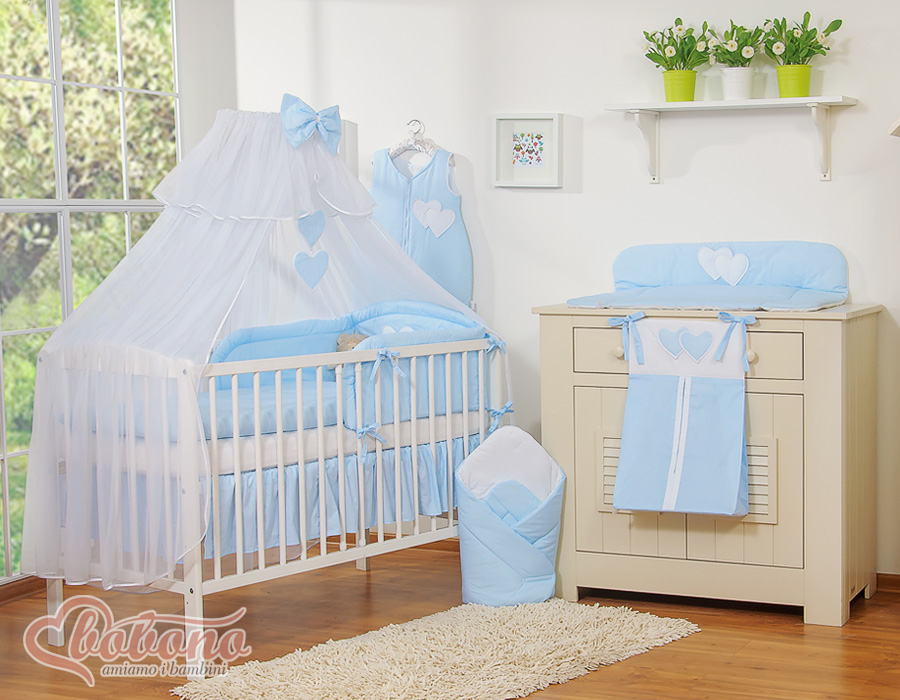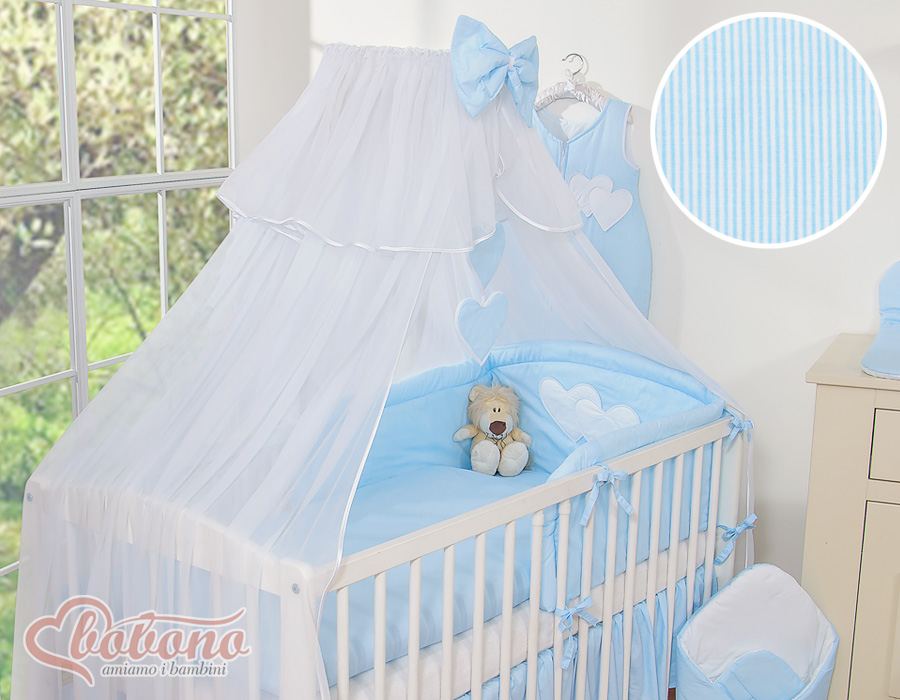 Baby Cot Bed Mosquito-net made of tulle- Hanging Hearts blue stripesBaby Cot Bed Mosquito-net made of tulle- Hanging Hearts blue stripesBaby Cot Bed Mosquito-net made of tulle- Hanging Hearts blue stripes