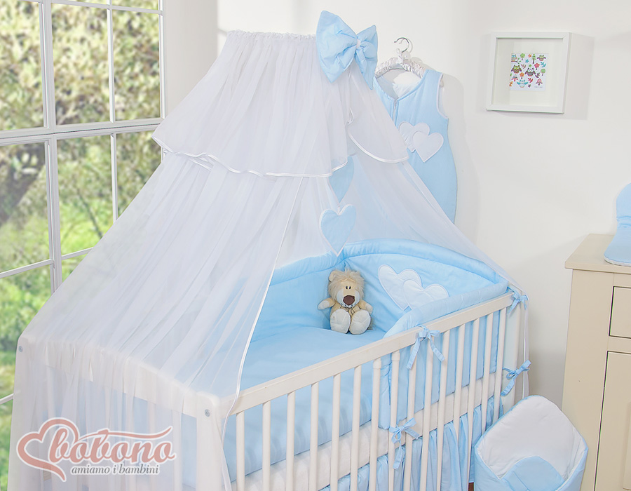 Baby Cot Bed Mosquito-net made of tulle- Hanging Hearts blue stripes