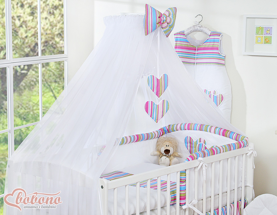 Baby Cot Bed Mosquito-net made of tulle- Hanging Hearts lila stripesBaby Cot Bed Mosquito-net made of tulle- Hanging Hearts lila stripesBaby Cot Bed Mosquito-net made of tulle- Hanging Hearts lila stripesBaby Cot Bed Mosquito-net made of tulle- Hanging Hearts lila stripes