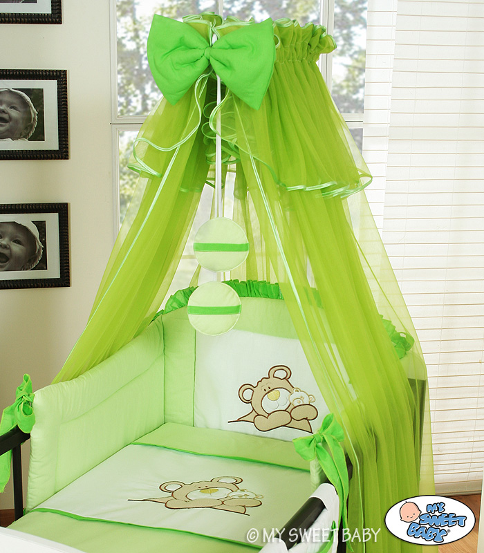 Baby Cot Bed Mosquito-net made of tulle- Teddy bear Barnaba greenBaby Cot Bed Mosquito-net made of tulle- Teddy bear Barnaba green