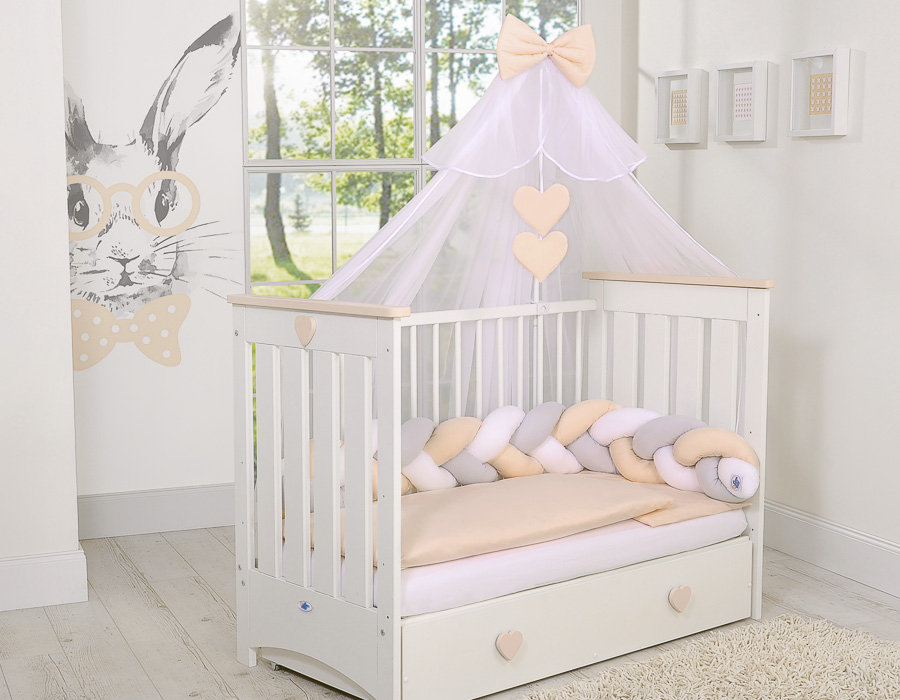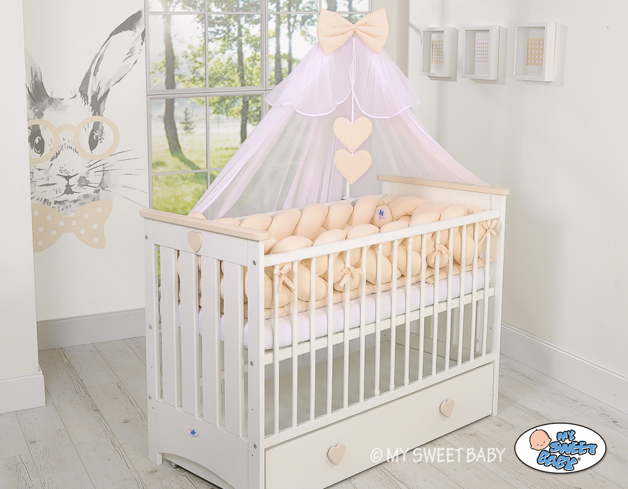 Mosquito net universally suitable for beds 140x70cm and 120x60cm. Suitable for all cots, looks very decorative.