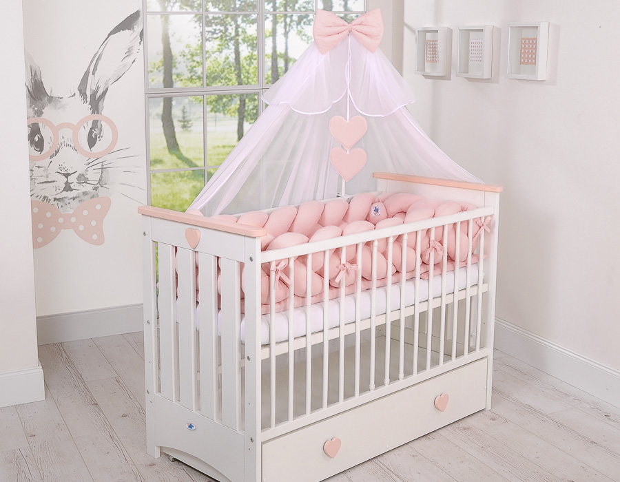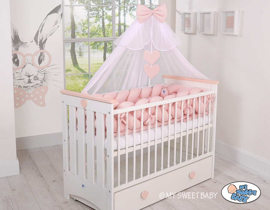 Mosquito net universally suitable for beds 140x70cm and 120x60cm. Suitable for all cots, looks very decorative.