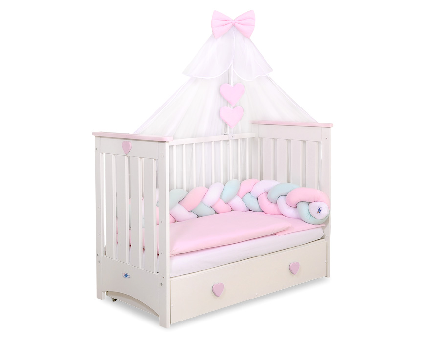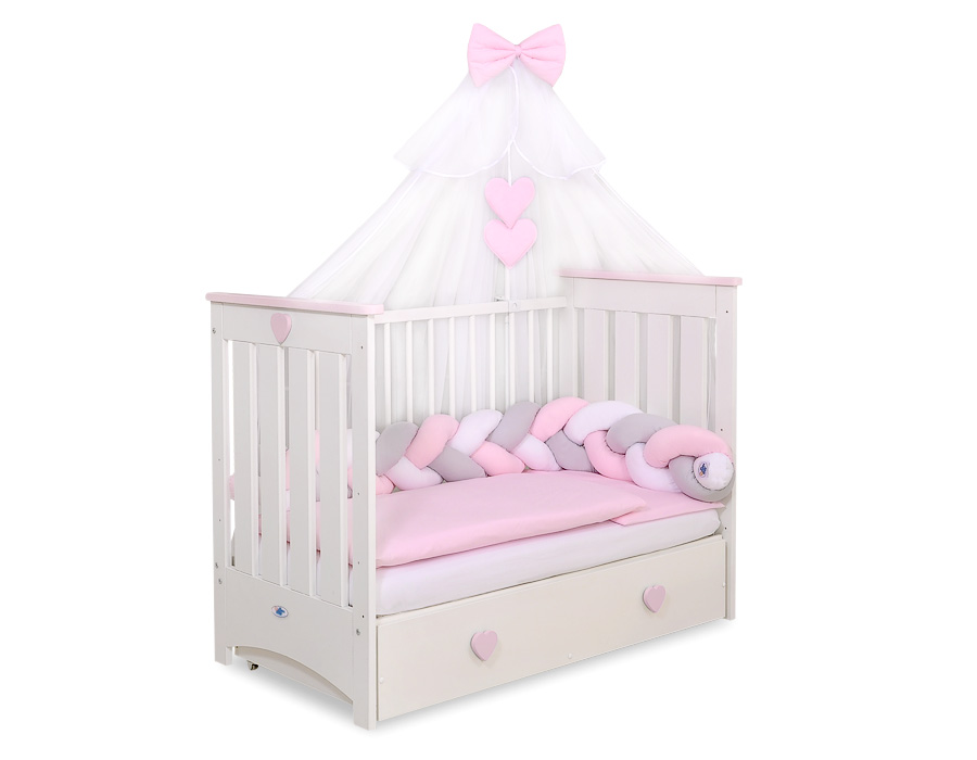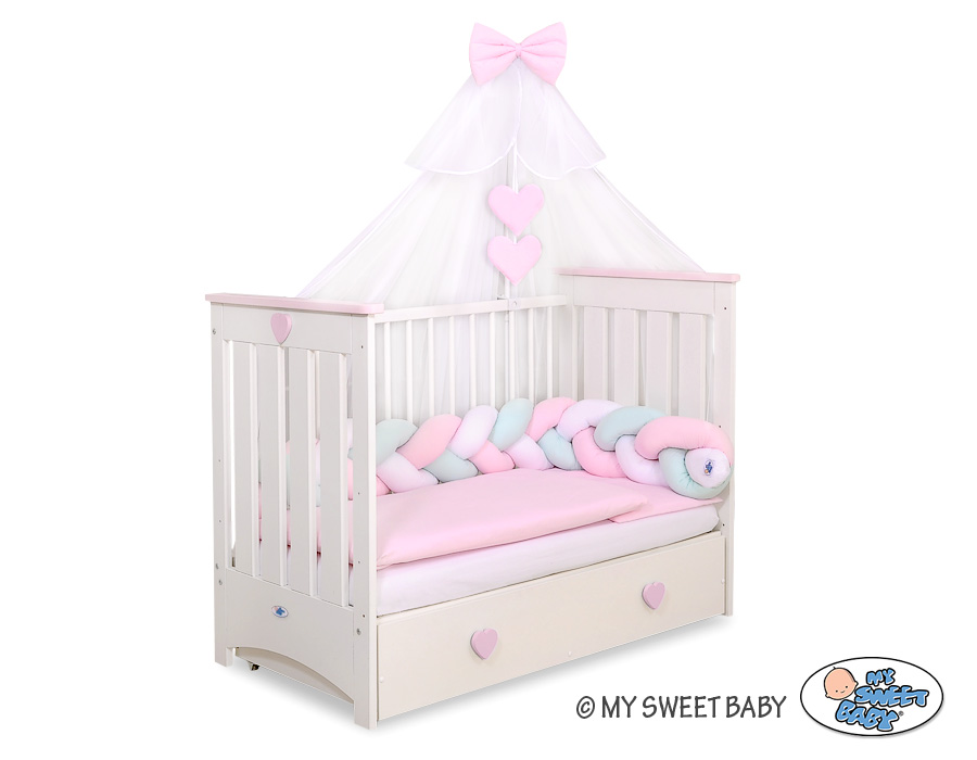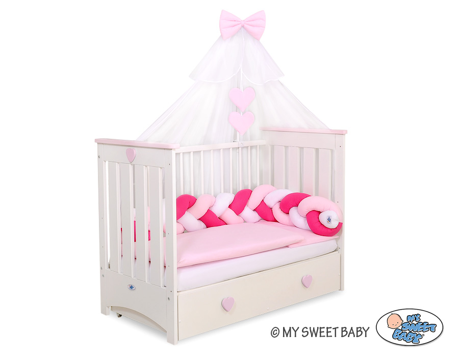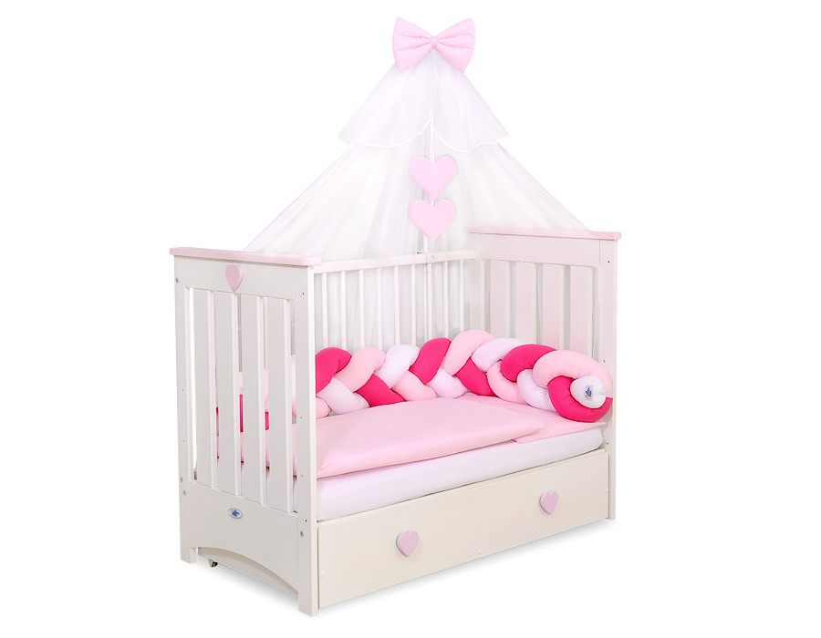 Baby Cot Bed Mosquito-net made of tulle- white with pink hearts Mosquito net universally suitable for beds 140x70cm and 120x60cm. Suitable for all cots, looks very decorative.