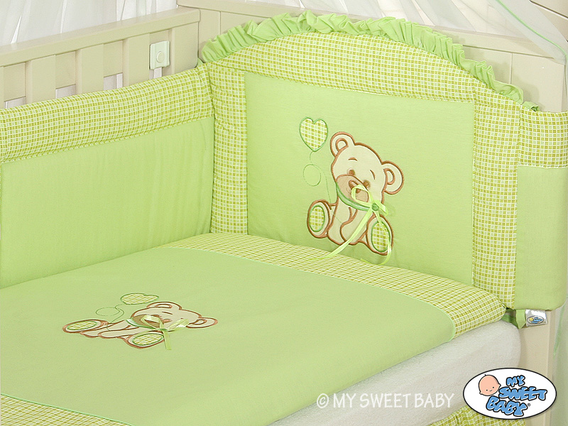 Baby Shop » Bedding sets for cots and beds » Collection TEDDY BEAR WITH BOW » Bedding sets for cot 120cm » Bumper for cot 120cm » Baby cot Bumper 120cm- Bear with Bow green