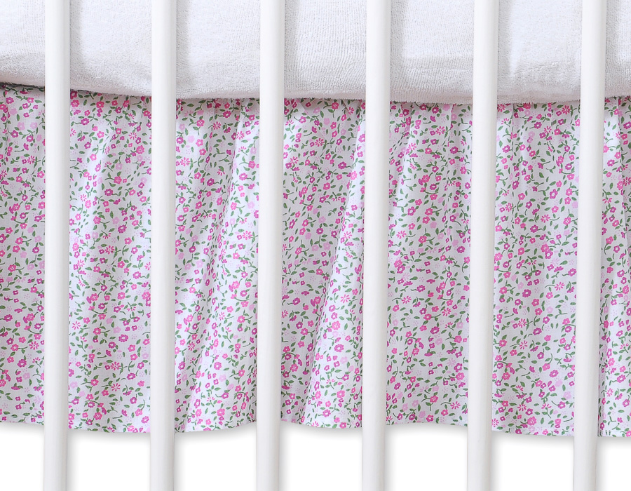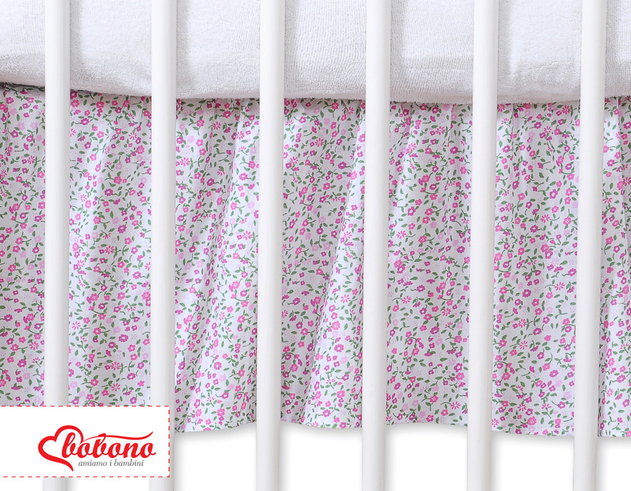 Special decoration of every baby cot. Dust ruffle- Masking flounce 60x120cm. Made of 100% cotton.
