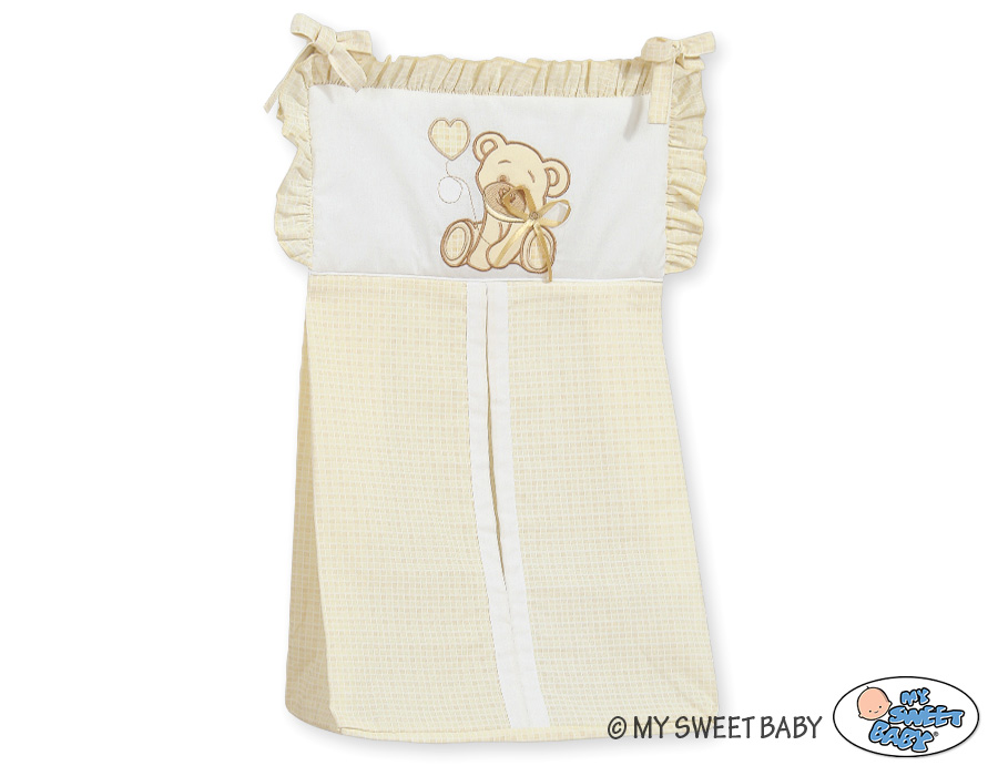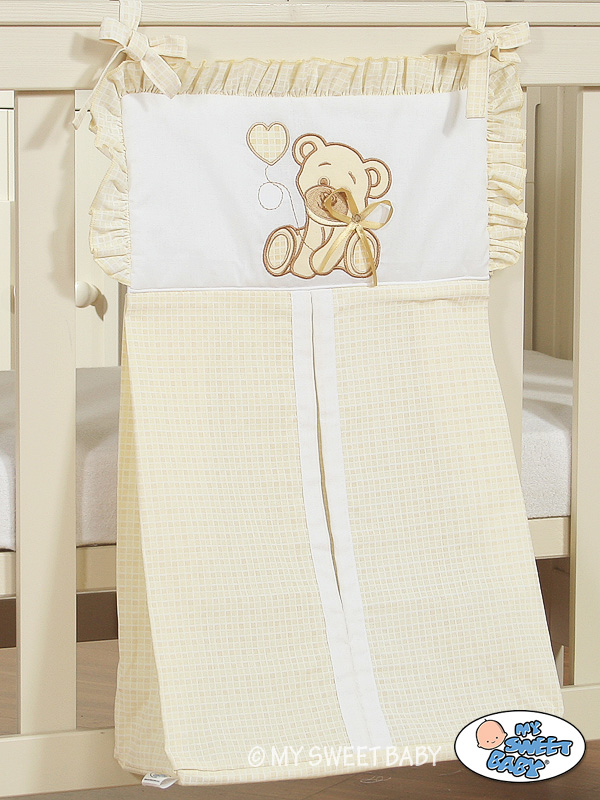 Baby cot diaper organiser bag- Bear with bow white Diaper bag with embroidery- Collection Bear with bow