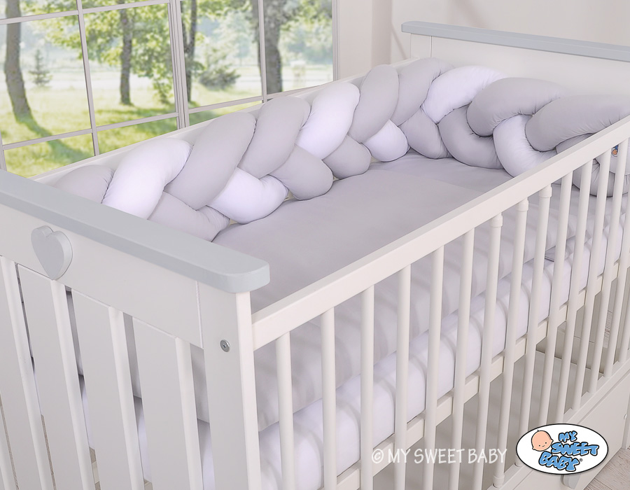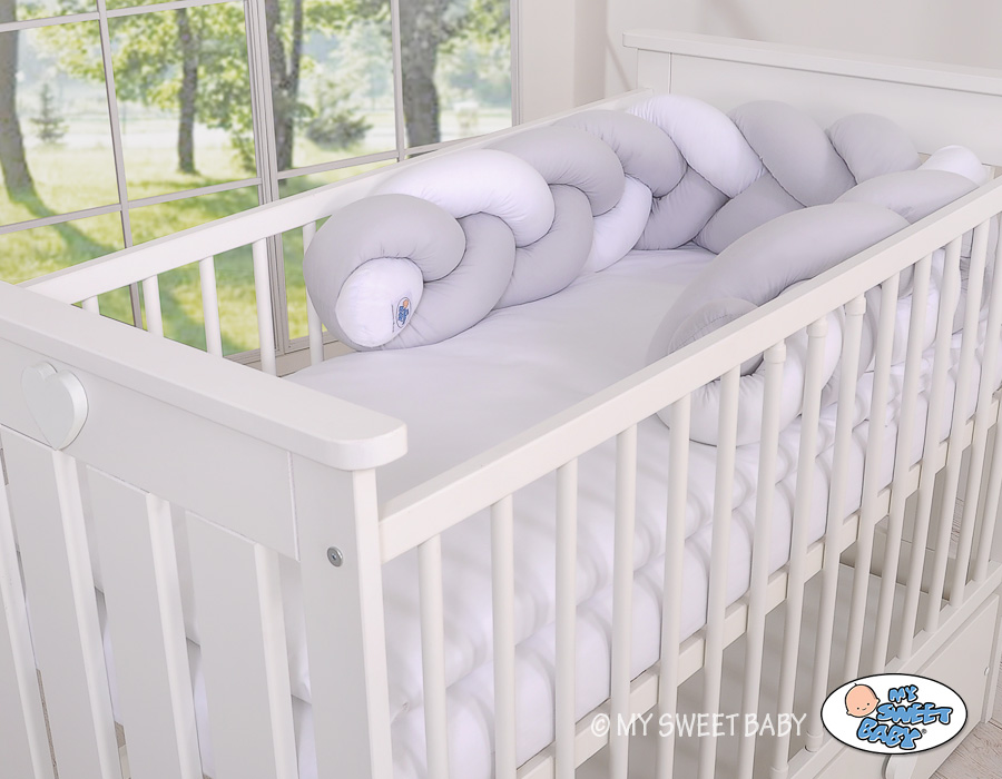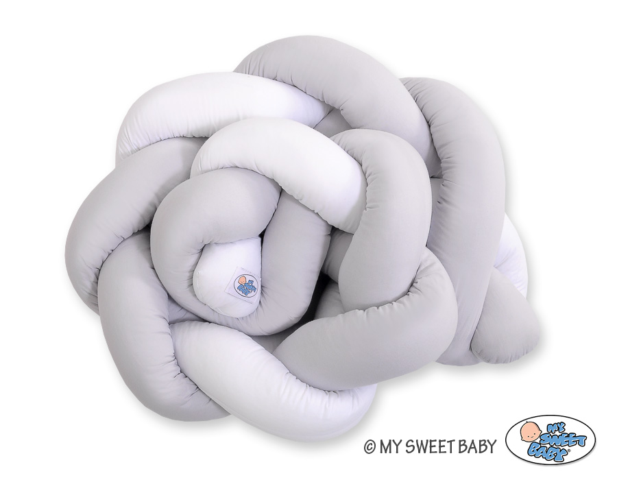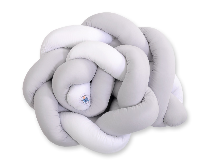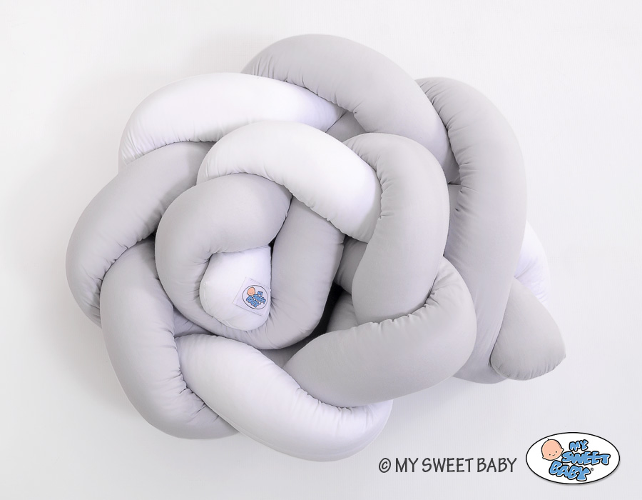 Baby cot Knot bumper 180cm - white-gray Beautiful, very soft braided cot bumper made of 100% cotton. Can be fixed to the bars.