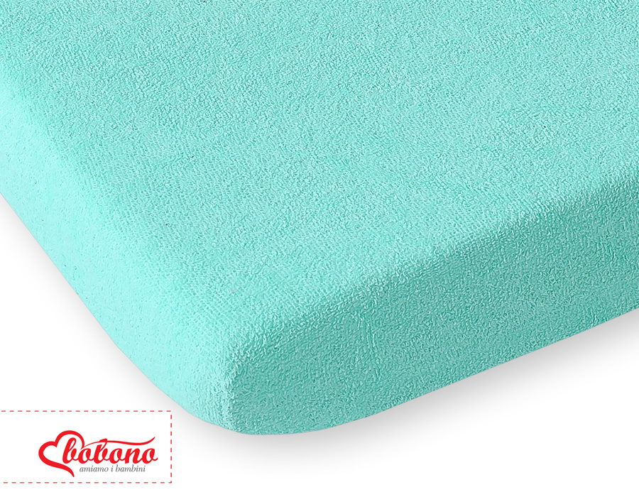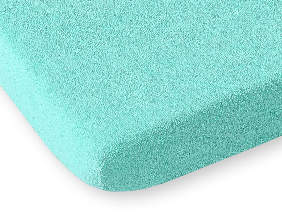 Baby Crib Sheet made of frotte (terry) 120x60cm- mint Sheet made of terry absolutely iron-free for a 120x60cm mattress. The fitted sheets are breathable, soft and comfortable.