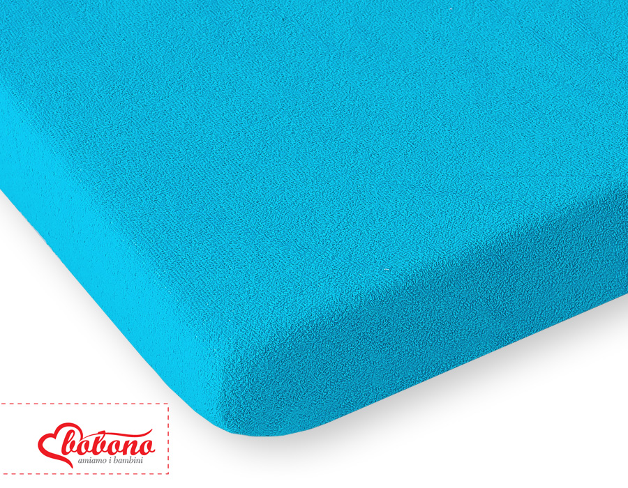 Baby Crib Sheet made of frotte (terry) Baby Cot140x70cm- Turquoise Sheet made of frottee absolutely iron-free for a 140x70cm mattress. The fitted sheets are breathable, soft and comfortable.