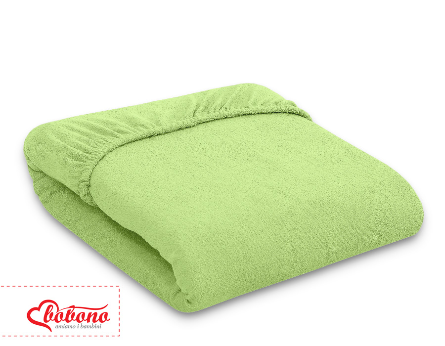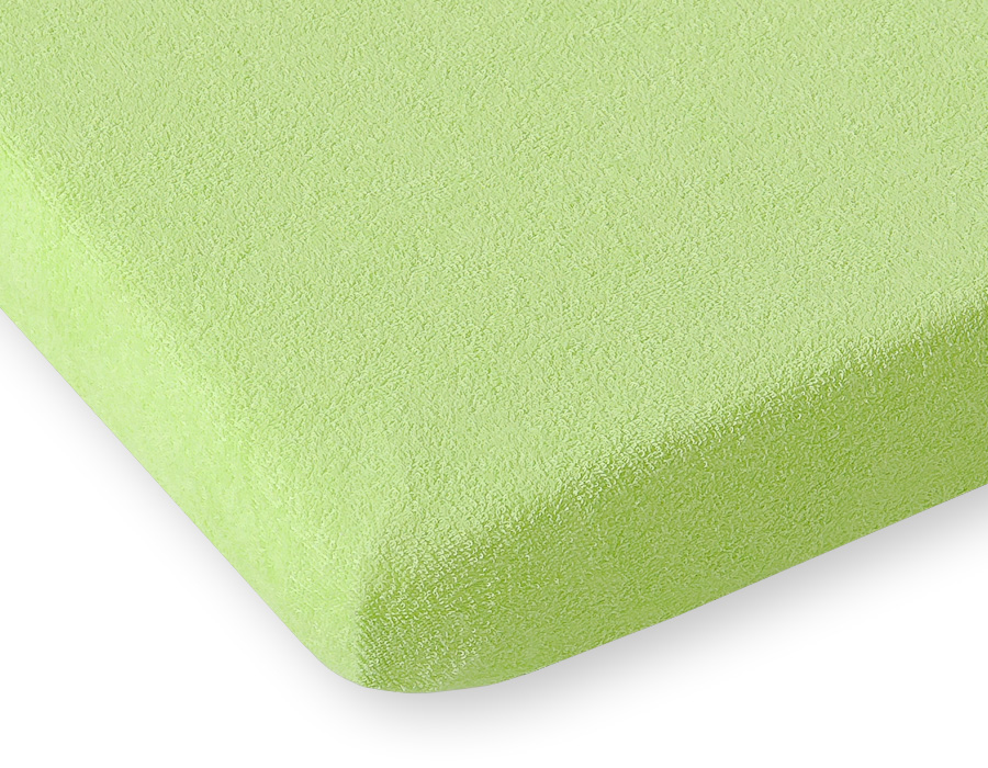 Baby Crib Sheet made of frotte (terry) for Baby Bed 140x70cm- Green Sheet made of frottee absolutely iron-free for a 140x70cm mattress. The fitted sheets are breathable, soft and comfortable.