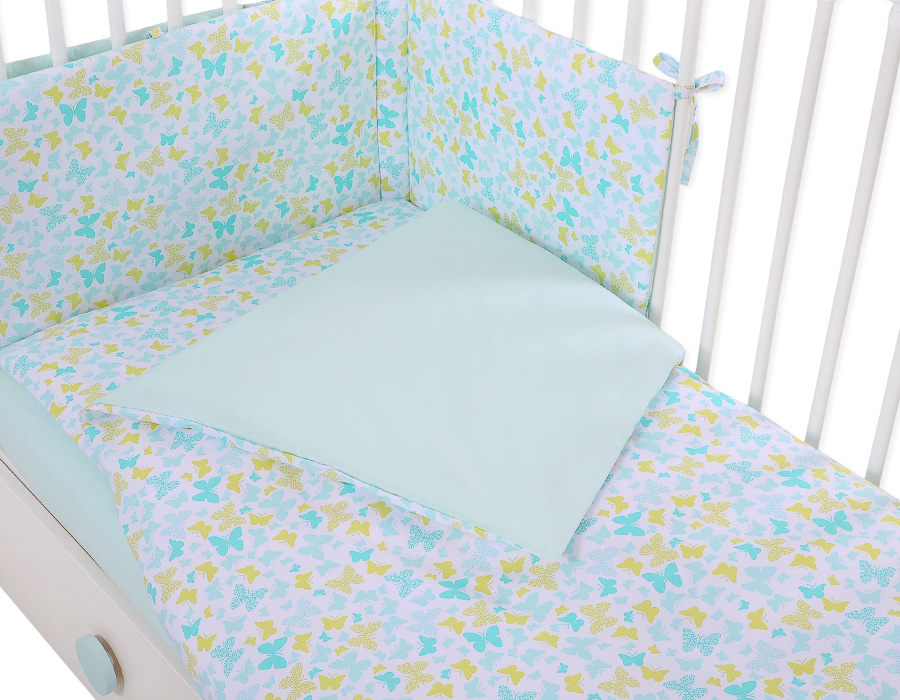 Baby Crib/Cot Bedding set 3-pcs - blue butterflies