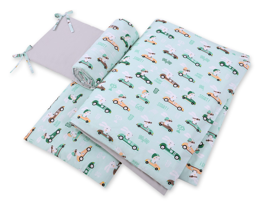 Baby Shop » Bedding sets for cots and beds » Collection FUN & JOY » Bedding sets for cot 120cm » Bedding set 3-pcs » Baby Crib/Cot Bedding set 3-pcs - mint rabbits