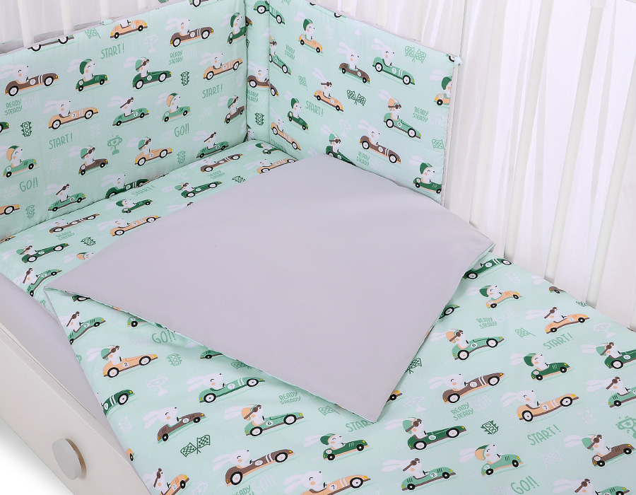 Baby Crib/Cot Bedding set 3-pcs - mint rabbits