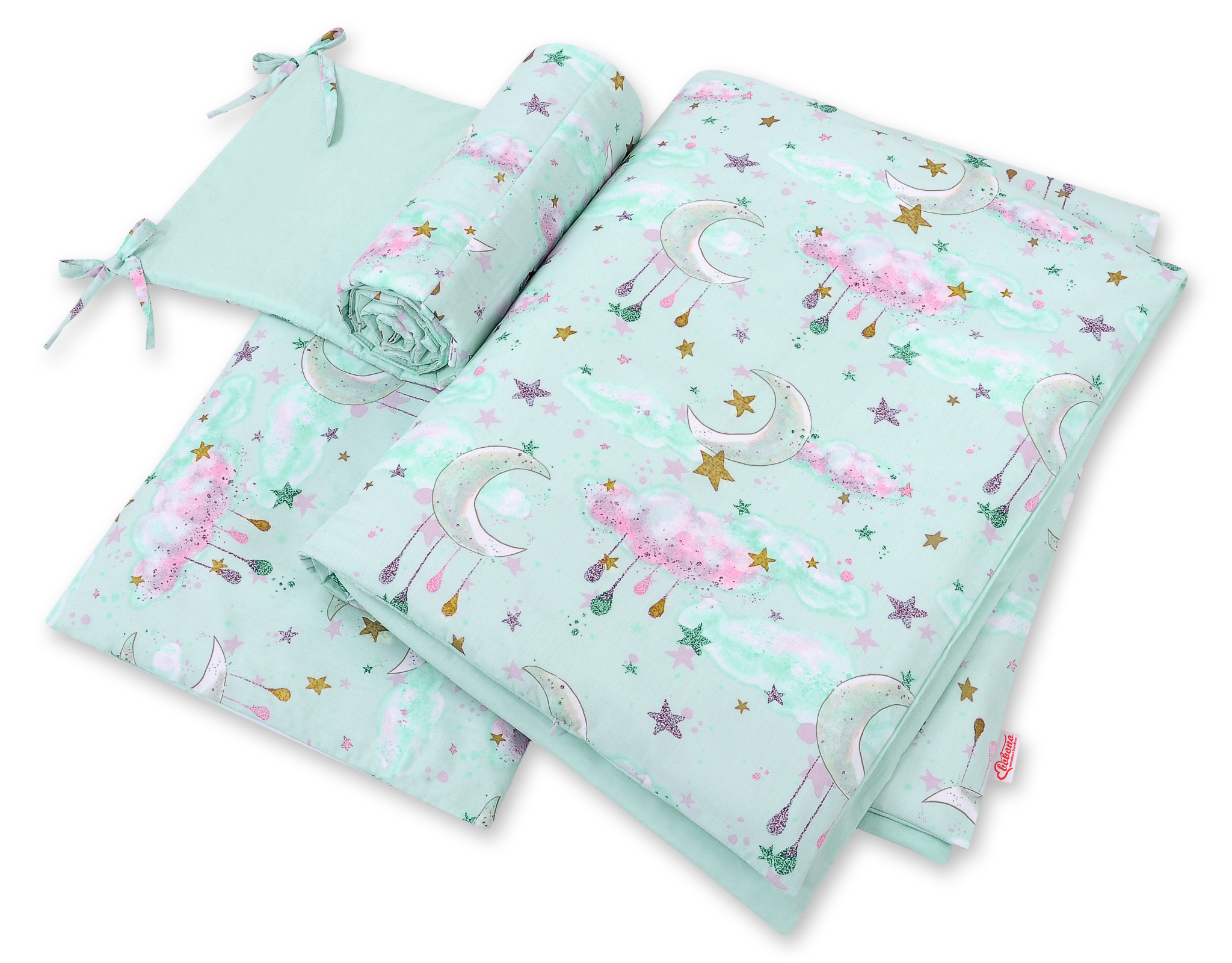 Baby Shop » Bedding sets for cots and beds » Collection FUN & JOY gold (special edition) » Bedding sets for cot 120cm » Bedding set 3-pcs » Baby Crib/Cot Bedding set 3-pcs - moons mint