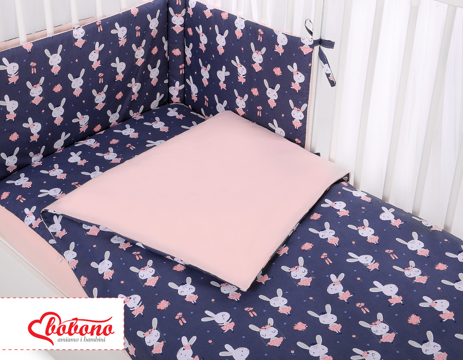 Baby Shop » Bedding sets for cots and beds » Collection FUN & JOY » Bedding sets for cot 120cm » Bedding set 3-pcs » Baby Crib/Cot Bedding set 3-pcs - rabbits navy blue