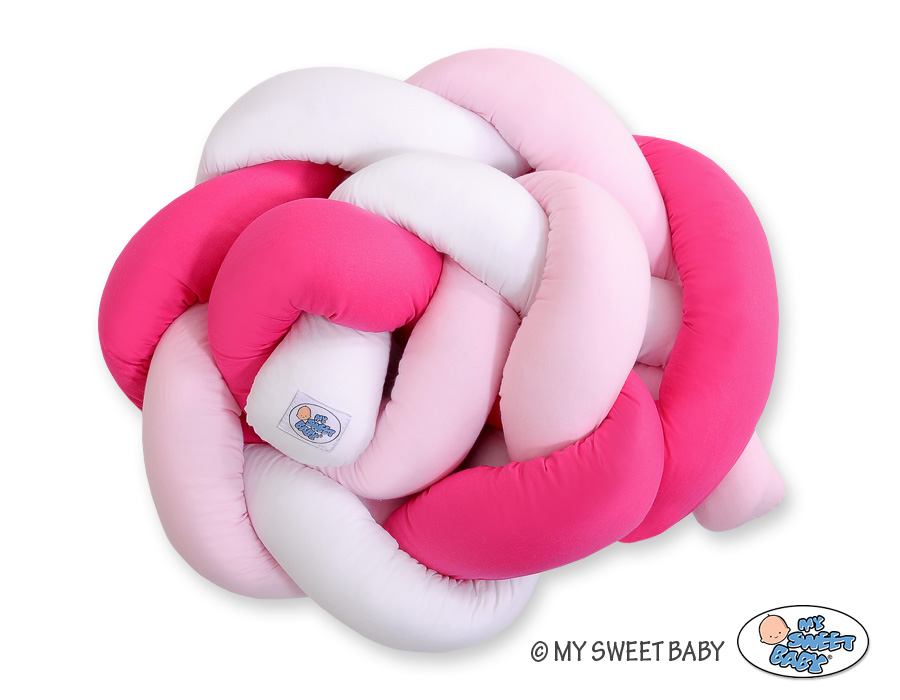 Baby Crib/Cot Braided Bumper 180cm - white-dark pink-pink Beautiful, very soft braided cot bumper made from 100% cotton. Can be fixed to the bars.