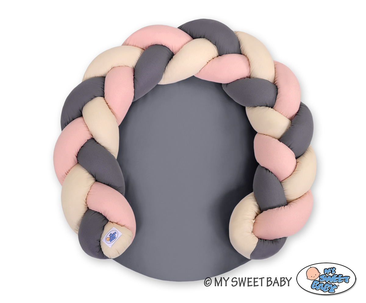 Baby donut pillow/ braided bumper play mat 2 in 1 - beige-pastel pink-anthracite