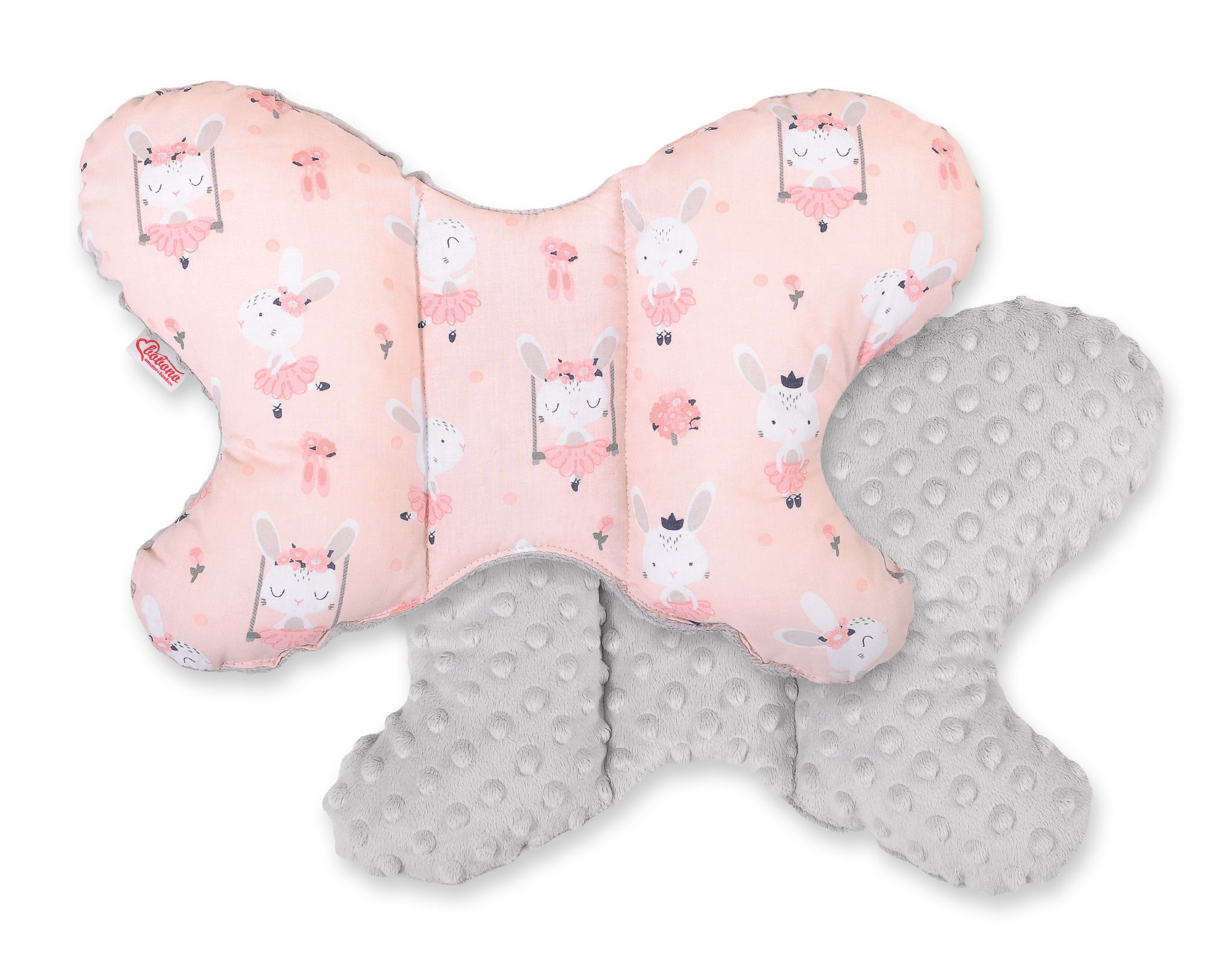 Baby Double-sided Anti Shock Pillow "BUTTERFLY" - ballerinas pink/gray