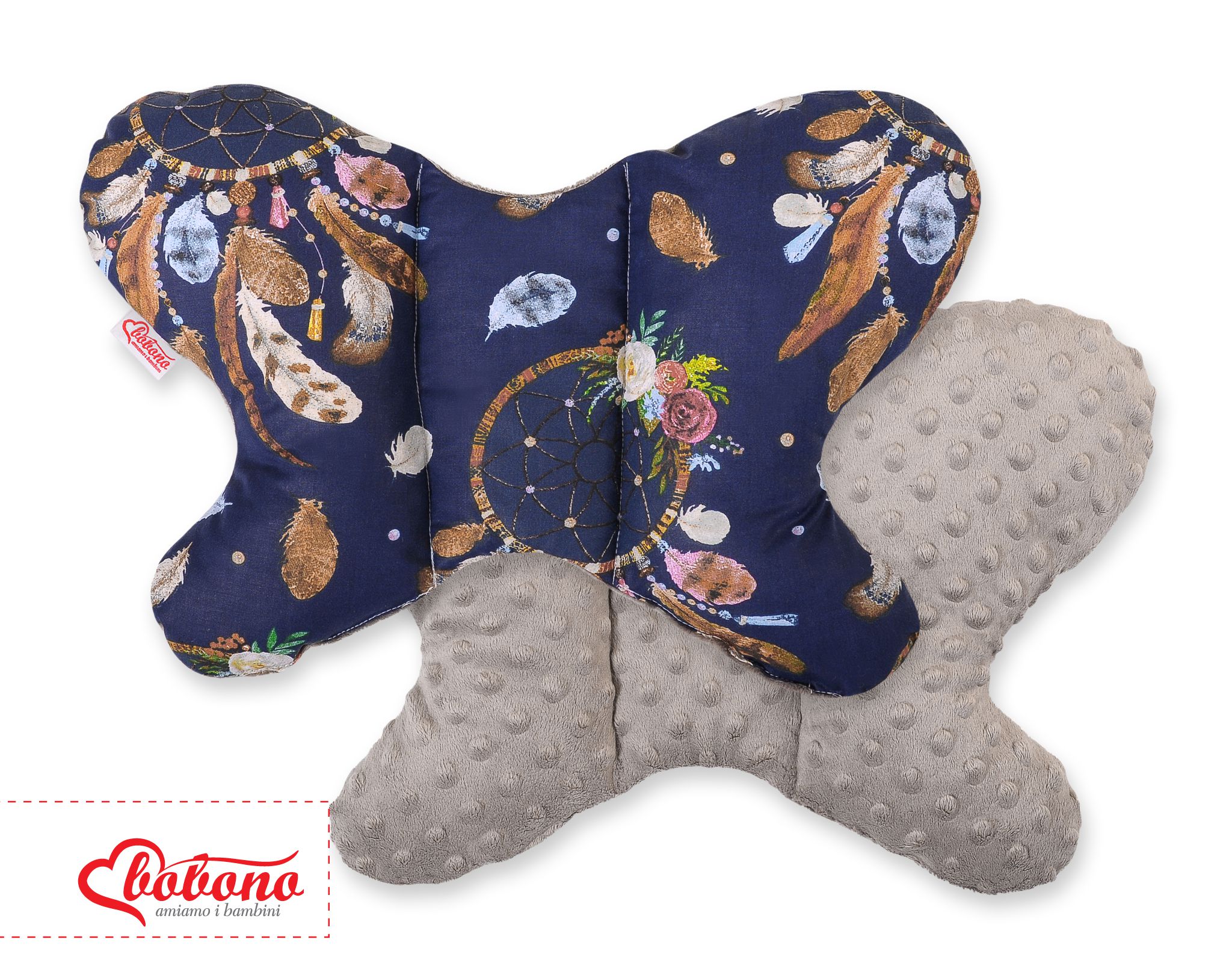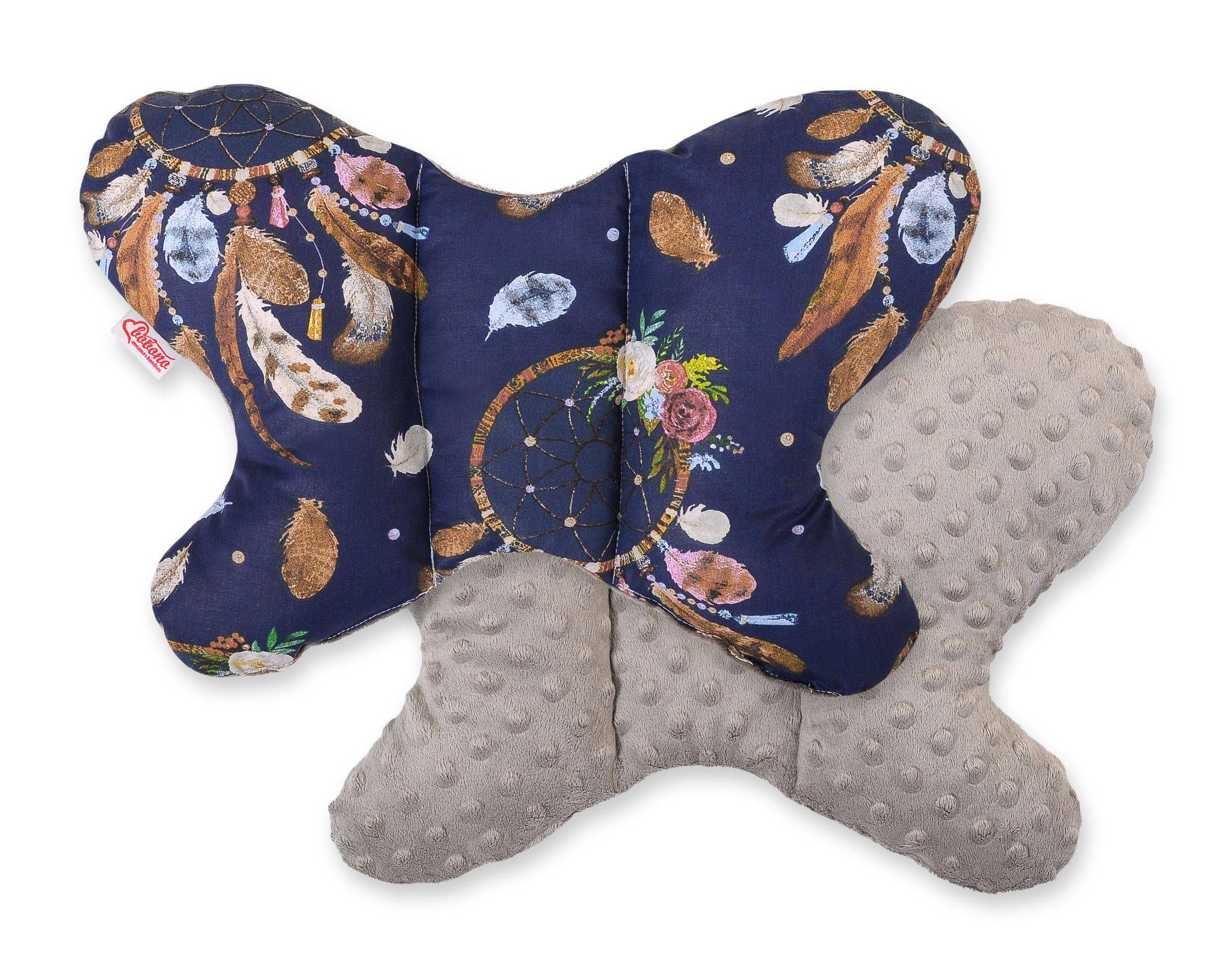 Baby Double-sided Anti Shock Pillow "BUTTERFLY" - dream catchers dark blue/gray brown