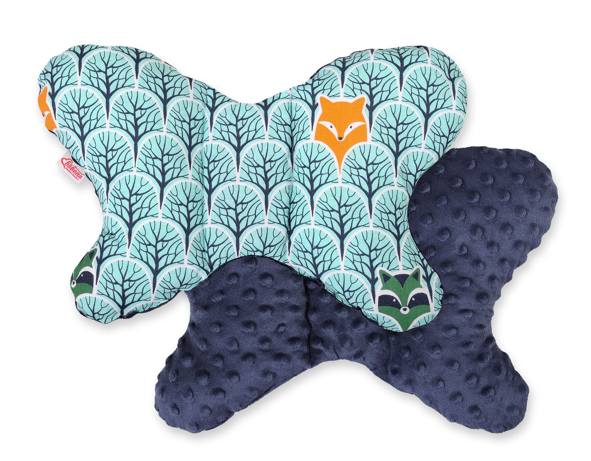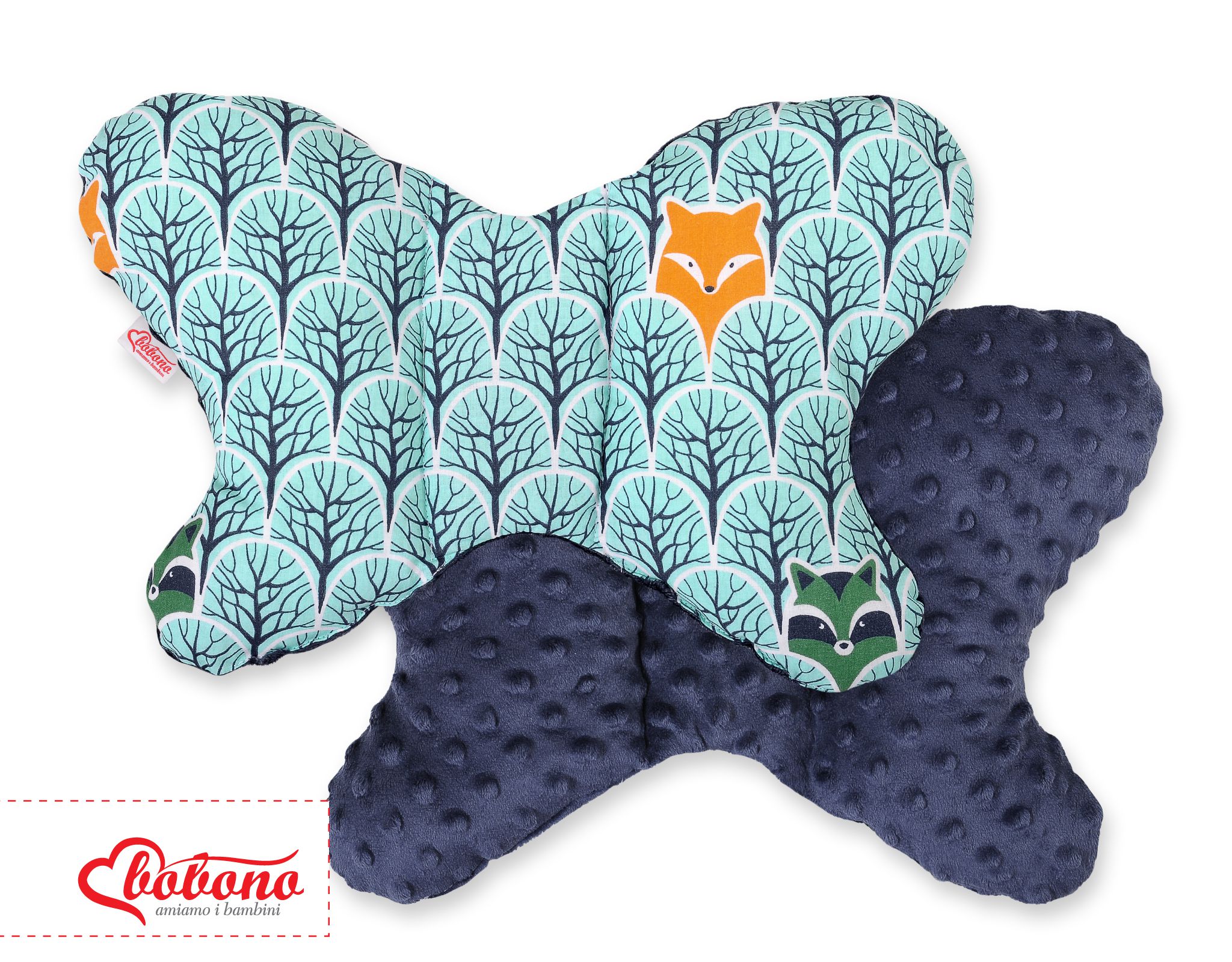 Baby Double-sided Anti Shock Pillow "BUTTERFLY" - mint forest/dark blue