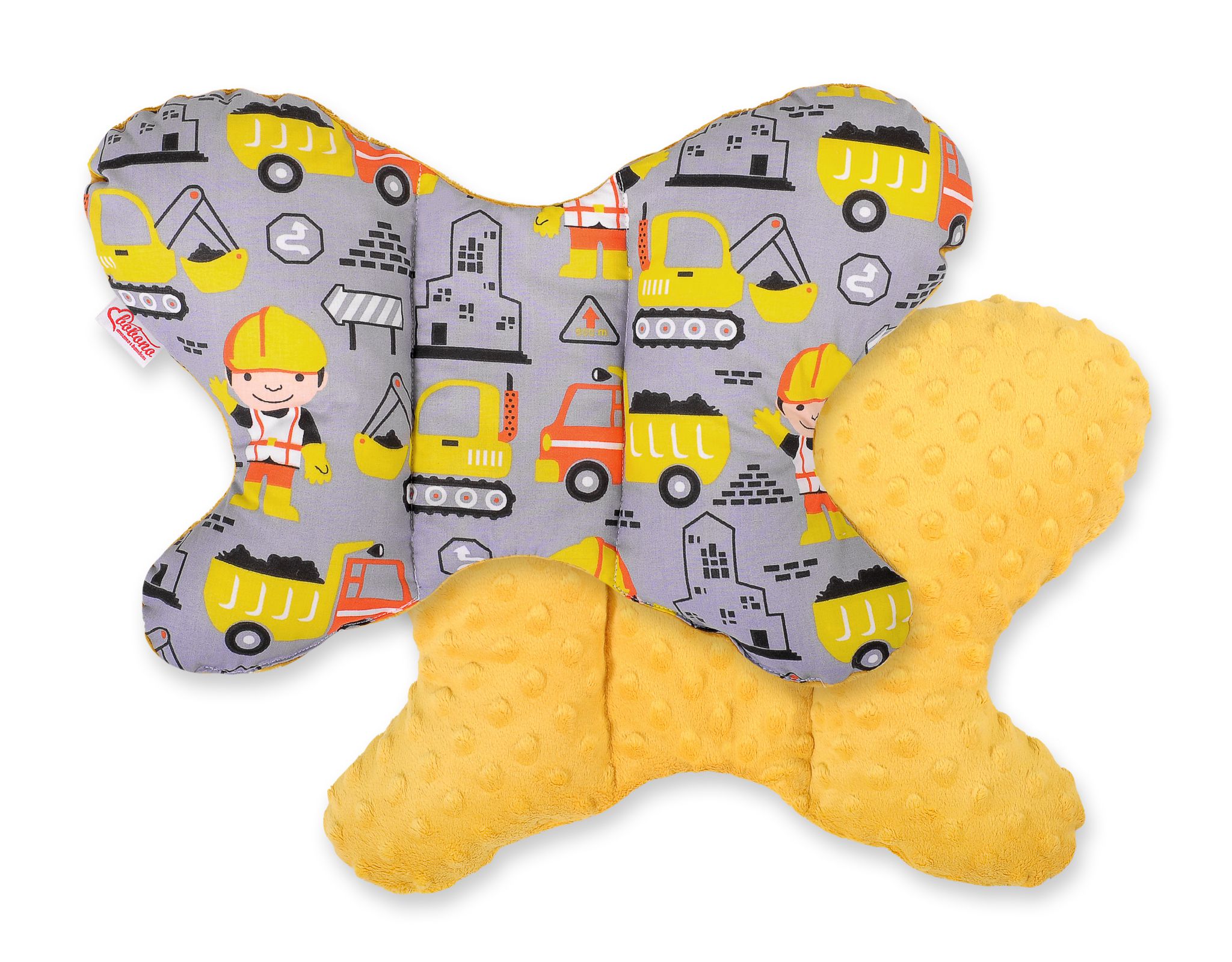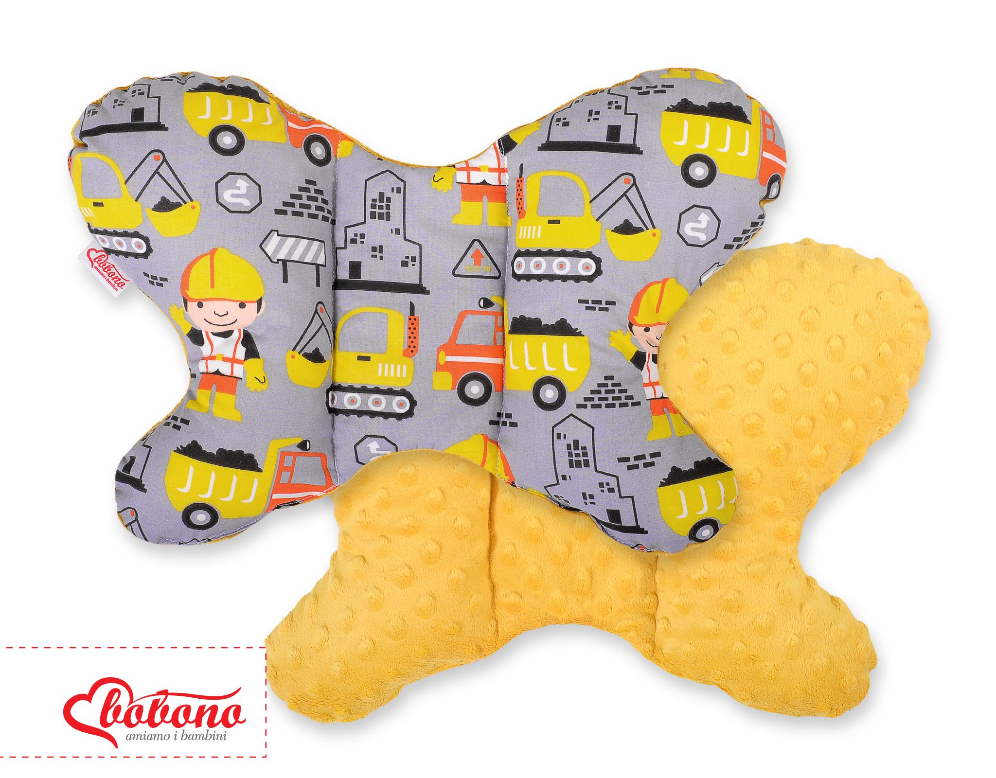 A butterfly cushion shape keeps correct head position at all times. It minimizes microshocks while the journey or while walking on uneven ground.