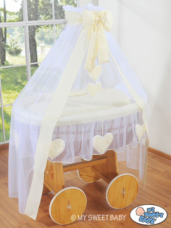 Baby Moses Basket on Wheels / Wicker drape crib Deluxe- Amelie cream