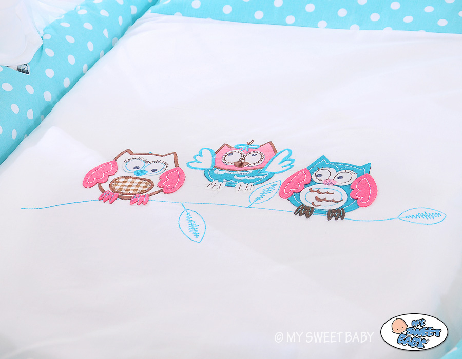 Turquoise Owls Crib- Drape Wicker Wheels On Basket Moses Baby