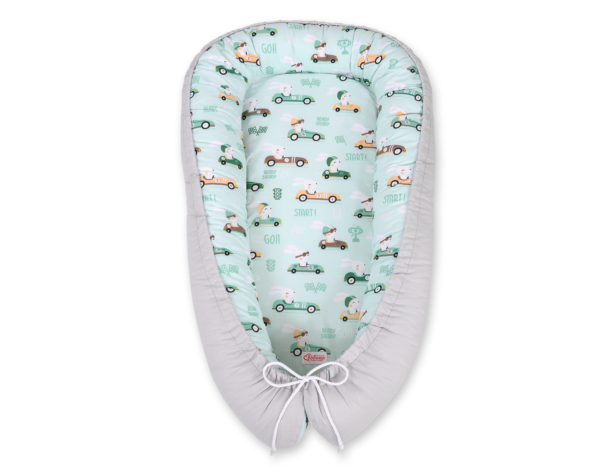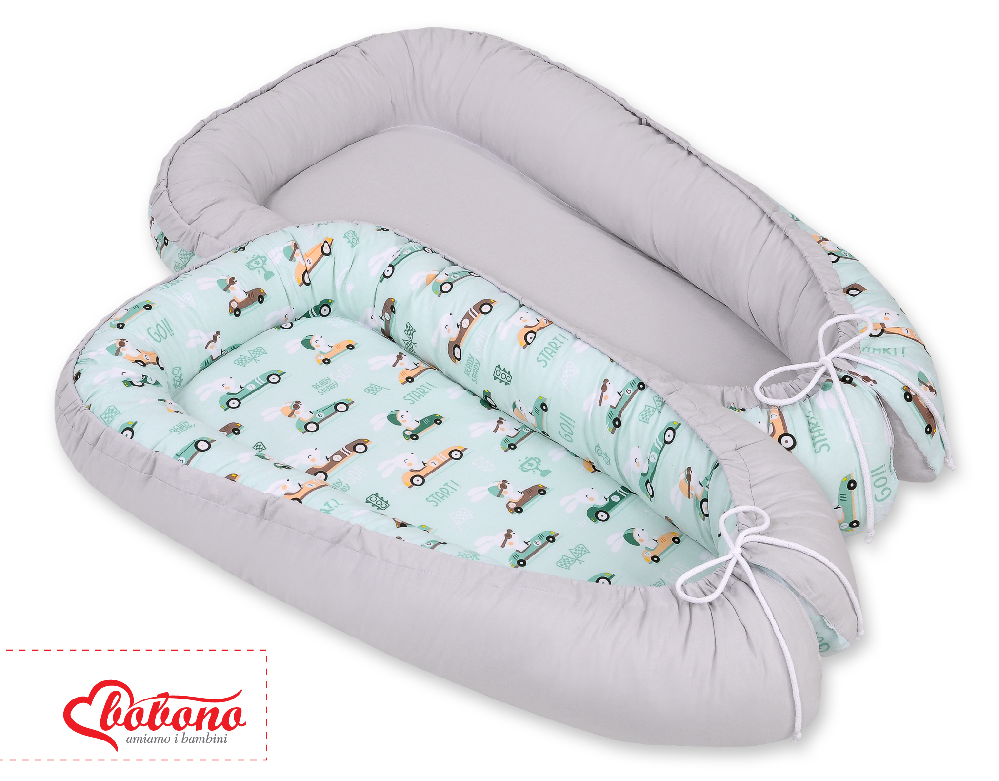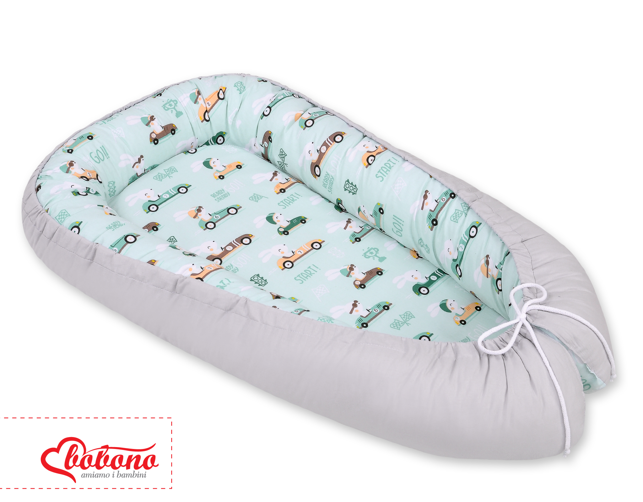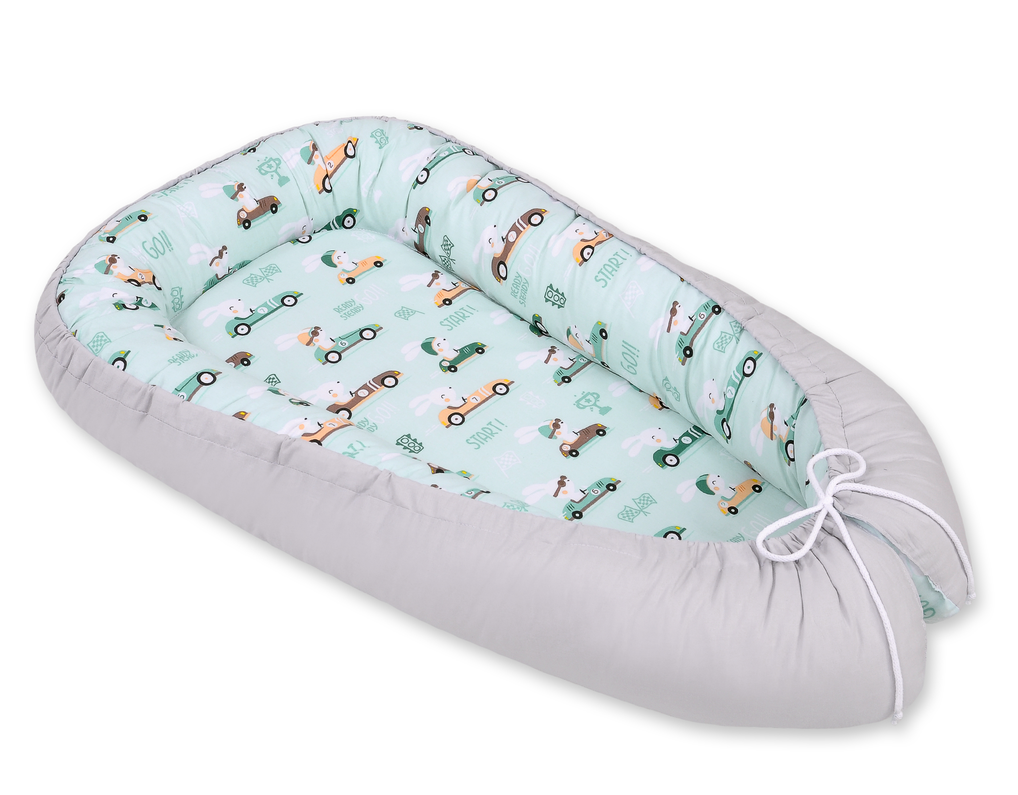 Baby Shop » Bedding sets for cots and beds » Collection FUN & JOY » Baby nest » Baby nest- mint rabbits/gray