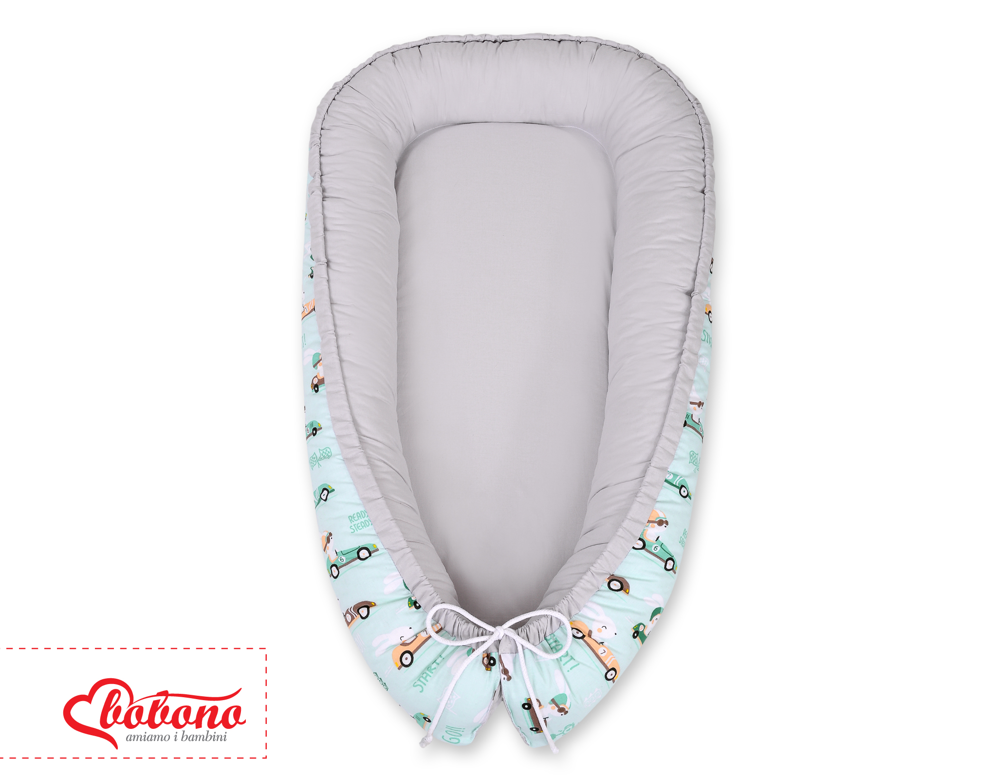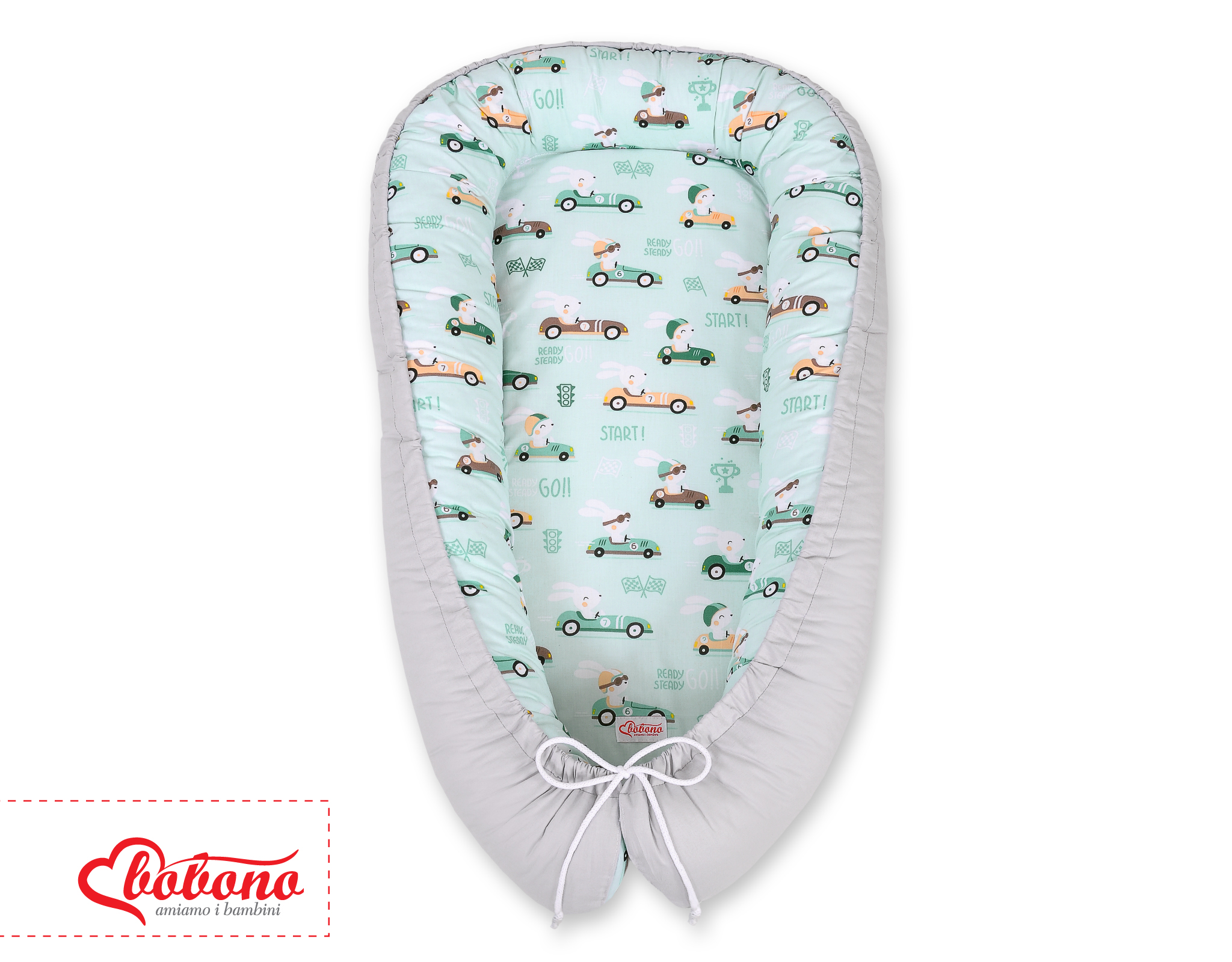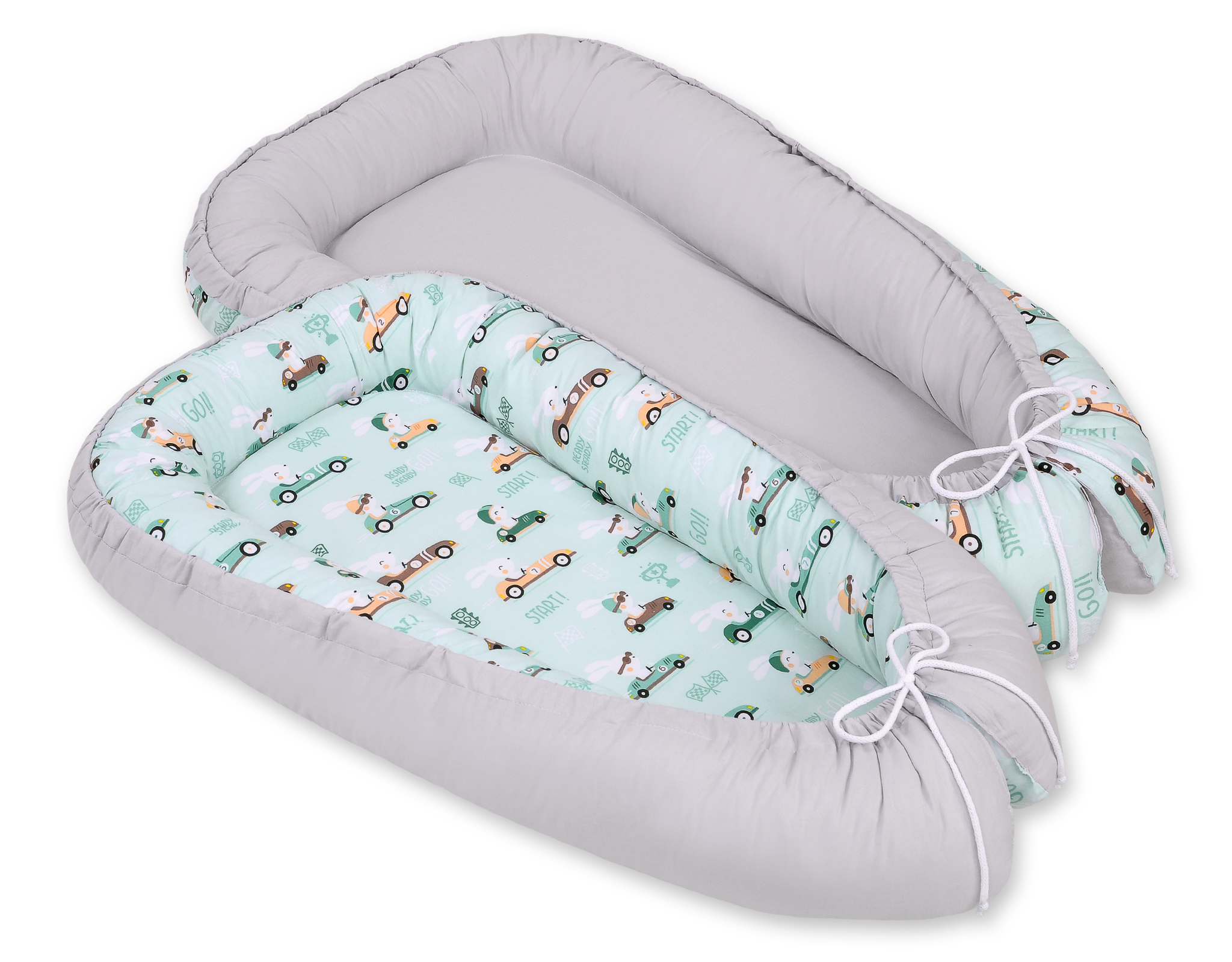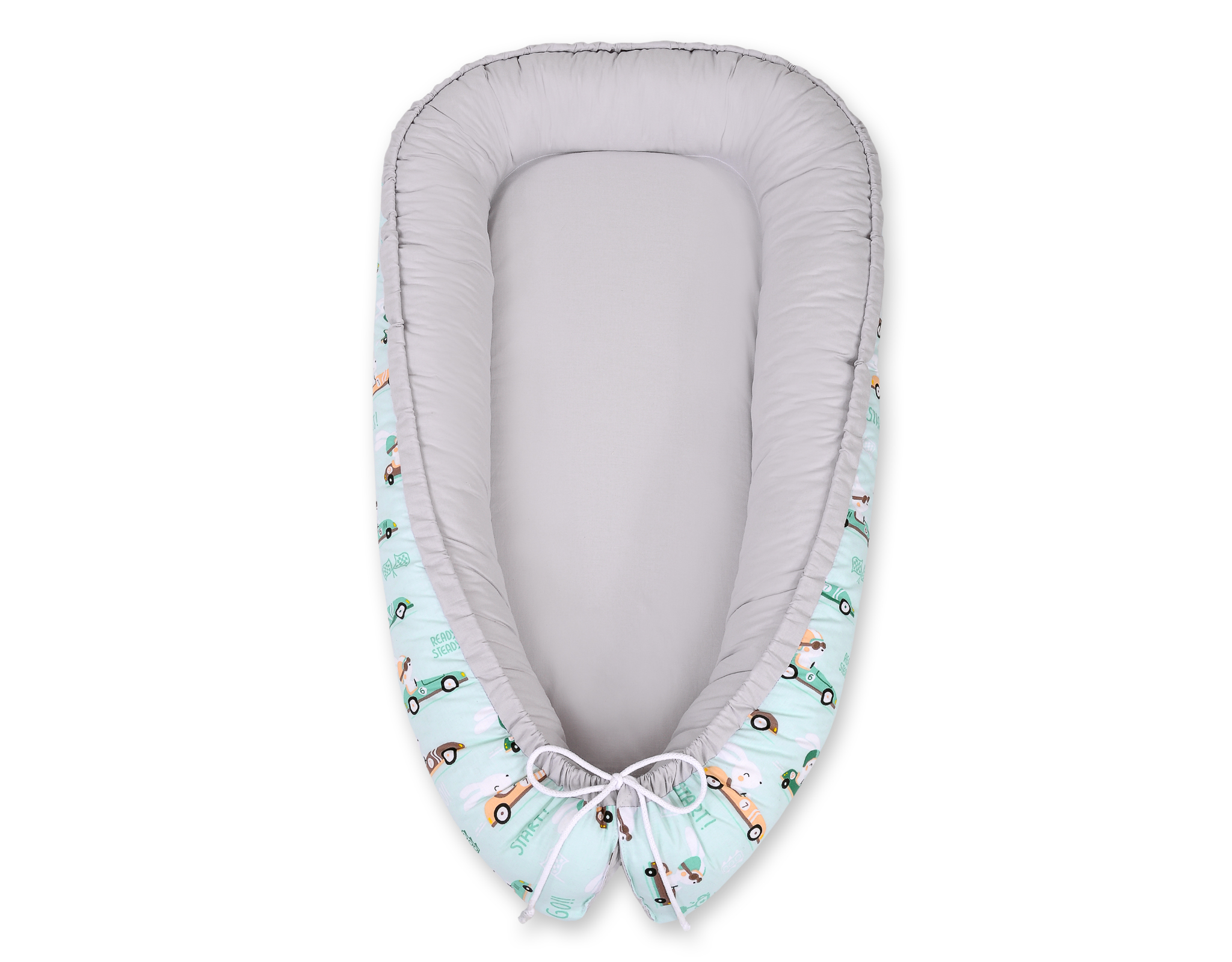 Baby Shop » Bedding sets for cots and beds » Collection FUN & JOY » Baby nest » Baby nest- mint rabbits/gray