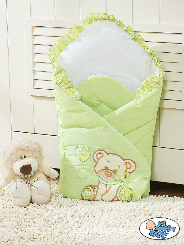 Baby Shop » Bedding sets for cots and beds » Collection TEDDY BEAR WITH BOW » Baby nest with embroidery » Baby nest - Newborn Blanket Bear with bow green