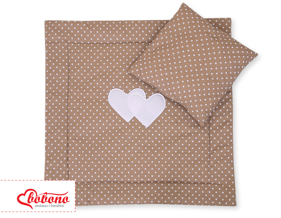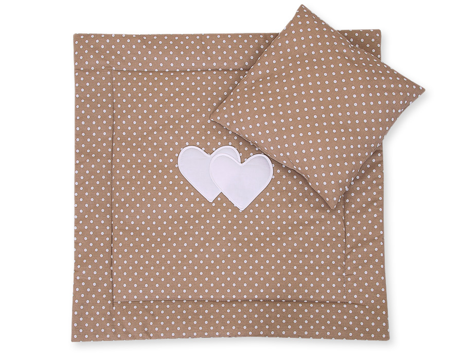 Baby pram bedding set 2pcs- Hanging hearts white dost on brownBaby pram bedding set 2pcs- Hanging hearts white dost on brown