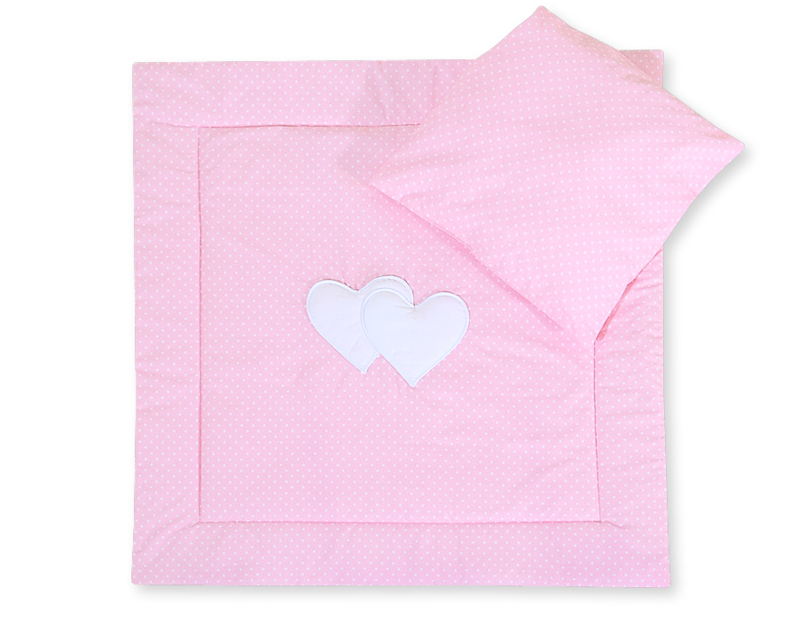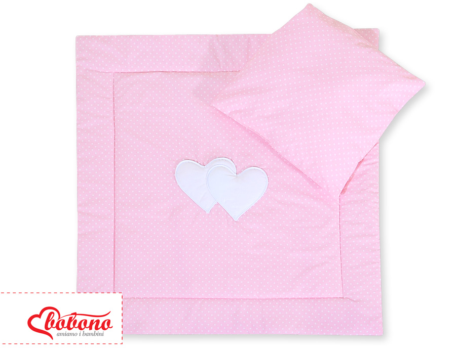 Baby pram bedding set 2pcs- Hanging hearts white polka dots on pinkBaby pram bedding set 2pcs- Hanging hearts white polka dots on pink