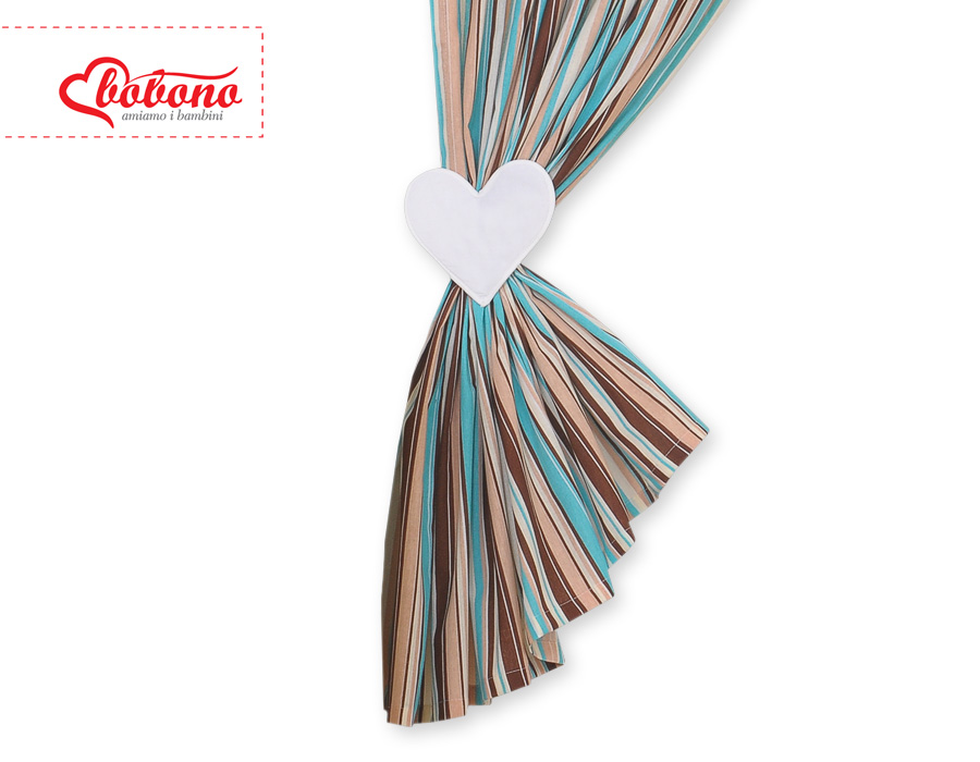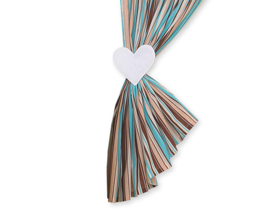 Baby Room Curtains- Hanging Hearts brown stripes Beautiful, long curtains. With the children's curtains you can make the children's room tastefully according to your individual taste.The curtains make a great contribution to making your little darling's room a place to stay. Curtains for Baby room- Hanging Hearts