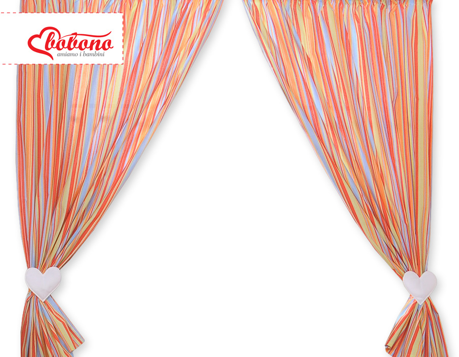 Baby Room Curtains- Hanging Hearts orange stripes Beautiful, long curtains. With the children's curtains you can make the children's room tastefully according to your individual taste.The curtains make a great contribution to making your little darling's room a place to stay.