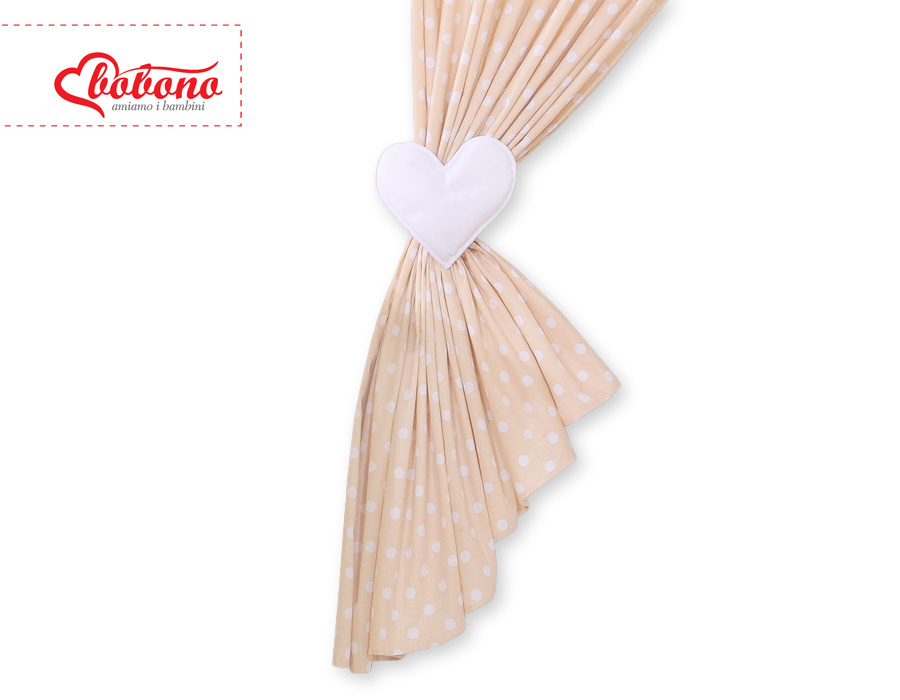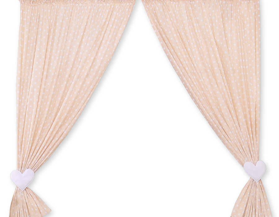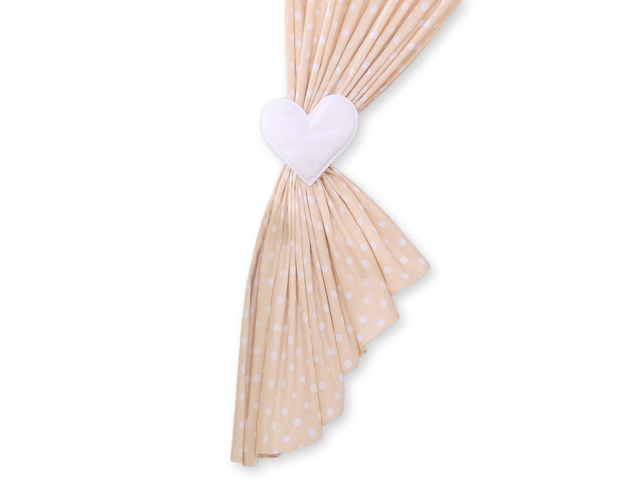 Baby Room Curtains- Hanging Hearts white dots on beige Beautiful, long curtains. With the children's curtains you can make the children's room tastefully according to your individual taste.The curtains make a great contribution to making your little darling's room a place to stay.