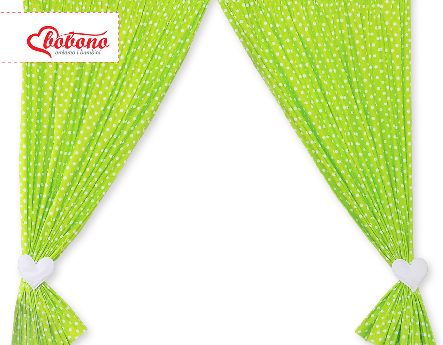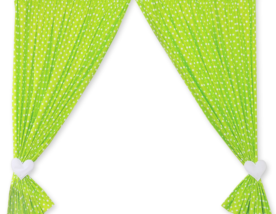 Baby Room Curtains- Hanging Hearts white dots on green Beautiful, long curtains. With the children's curtains you can make the children's room tastefully according to your individual taste.The curtains make a great contribution to making your little darling's room a place to stay.
