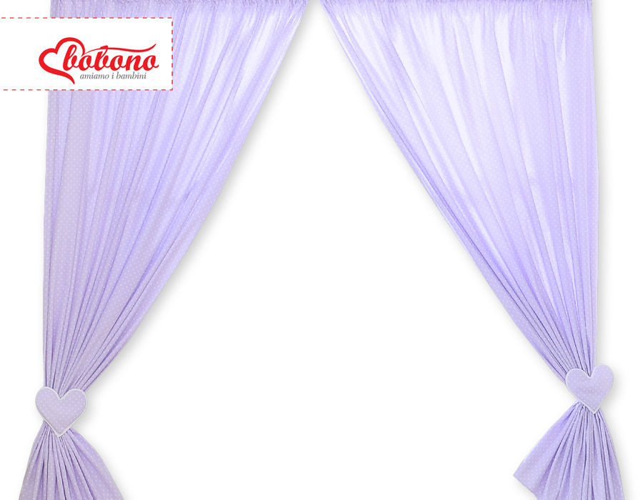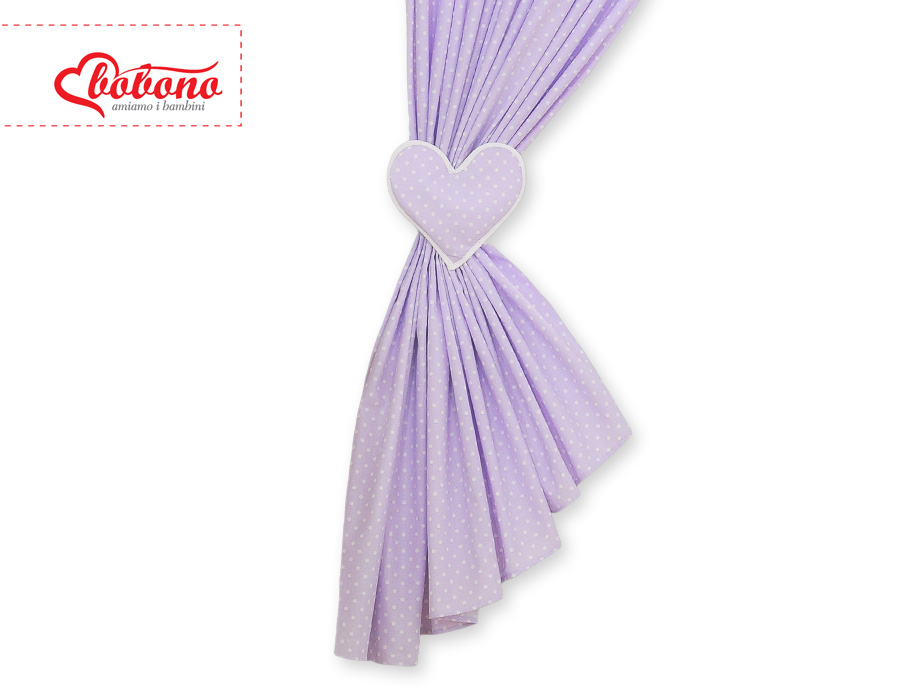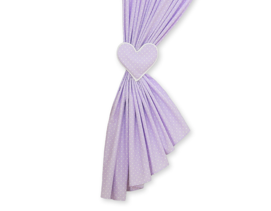 Baby Room Curtains- Hanging Hearts white polka dots on lilac Beautiful, long curtains. With the children's curtains you can make the children's room tastefully according to your individual taste.The curtains make a great contribution to making your little darling's room a place to stay.