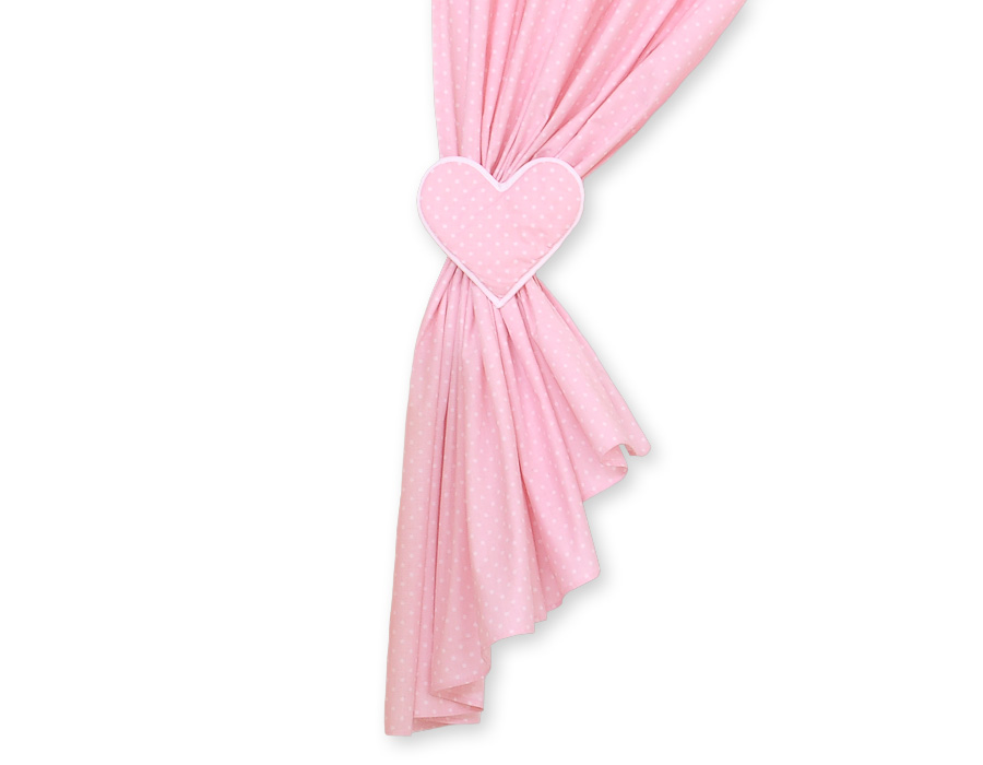 Baby Room Curtains- Hanging Hearts white polka dots on pink Beautiful, long curtains. With the children's curtains you can make the children's room tastefully according to your individual taste.The curtains make a great contribution to making your little darling's room a place to stay.