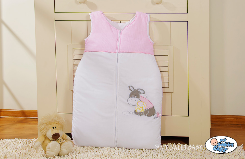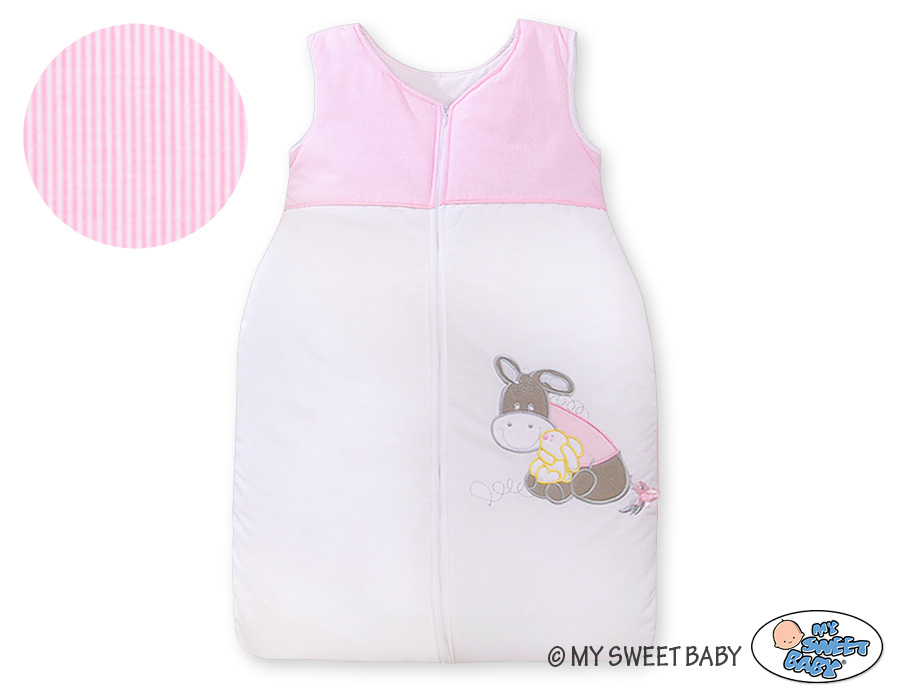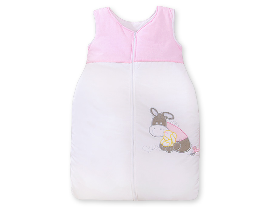 The sleeping bag is made of three layers of material - outer and inner layer of the sleeping bag are made of certificated cotton, between is a warm, soft fleece layer,also certified and antiallergic. The zip is sewn along the whole length of the sleeping bag.