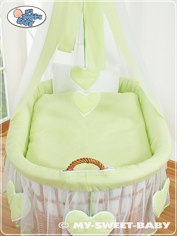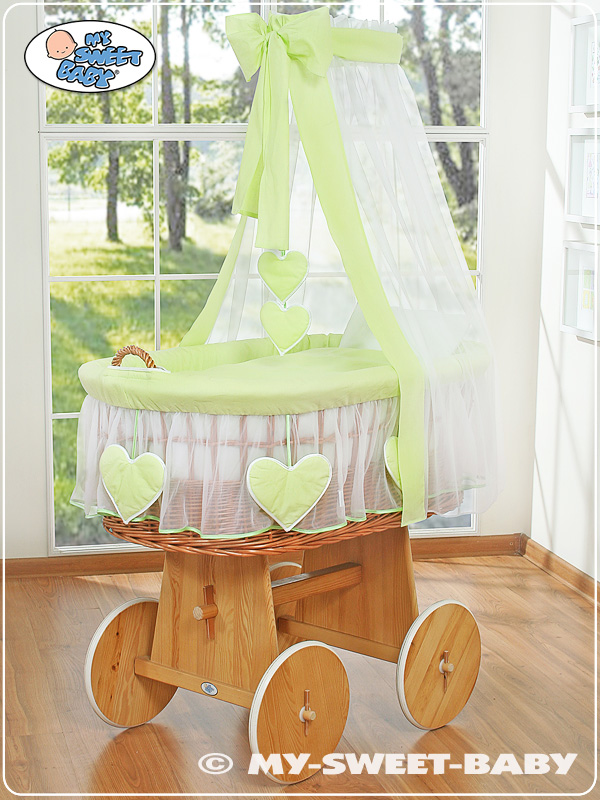 Baby Moses Basket on Wheels / Wicker drape crib- Amelie green