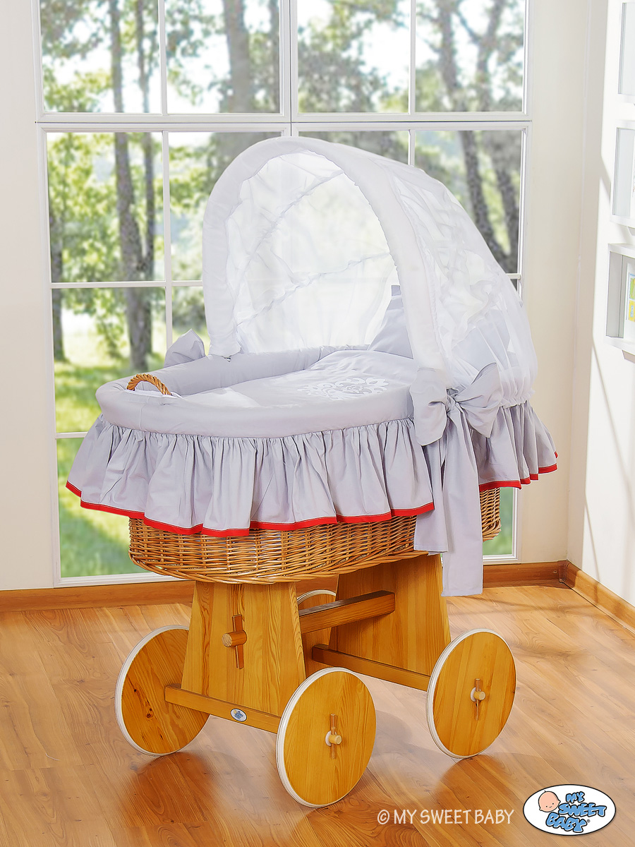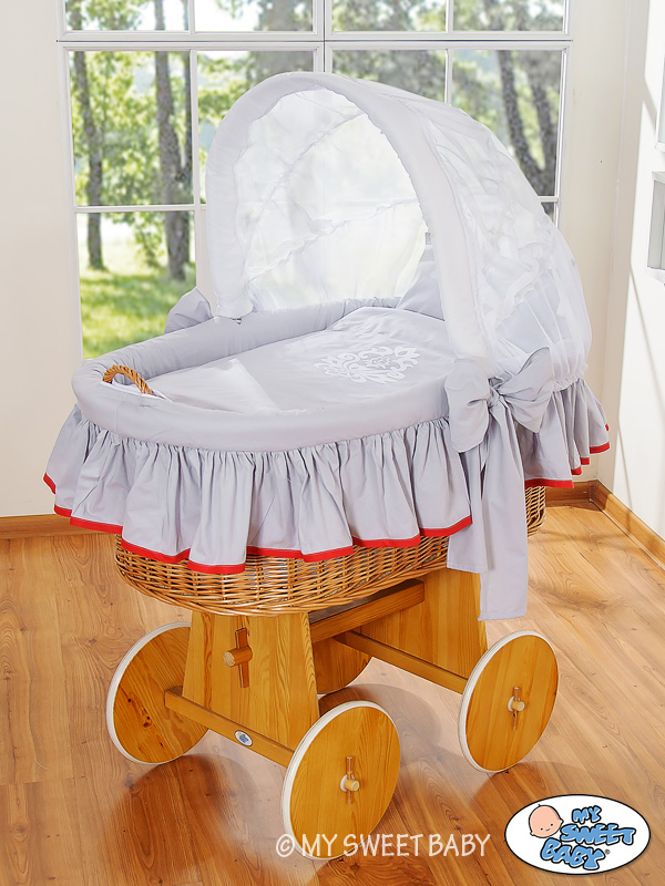 Gray-red Glamour Hood With Crib Wicker Baby