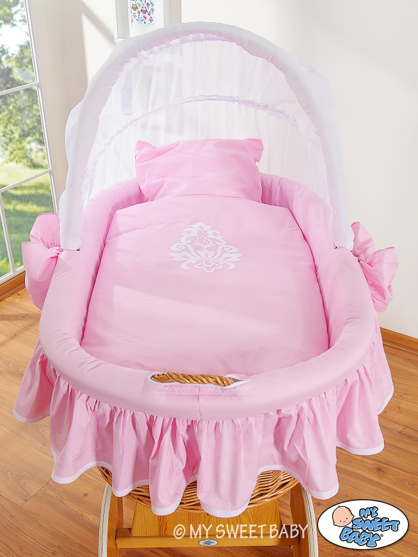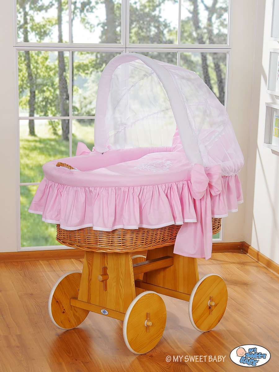 Pink-white Glamour Hood With Crib Wicker Baby